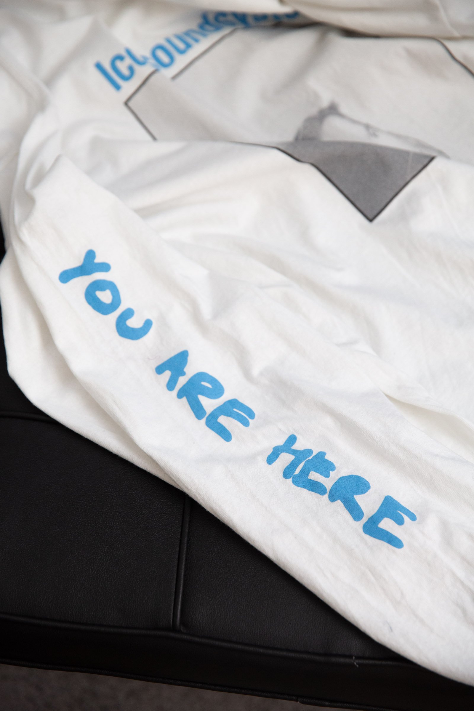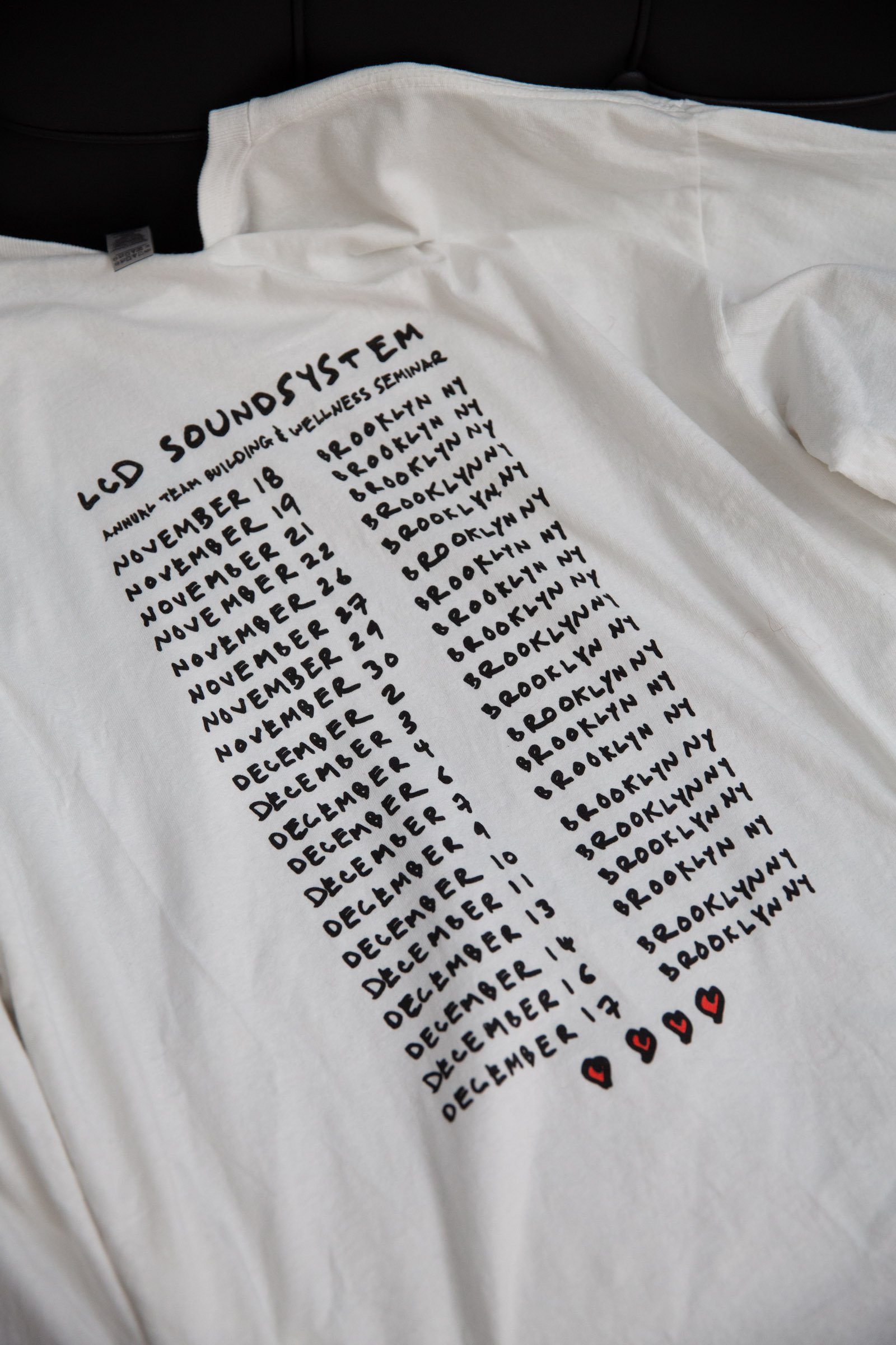 さっき調べたんですけど、LCDサウンドシステムのオンラインストアでは売ってないんですよ。多分、ノア・バームバック(Noah Baumbach)監督の最新作「ホワイト・ノイズ(White noise)」のサウンドトラックに、彼らの楽曲が提供されていて、そのジャケットのデザインがこれ(ロンTのデザイン)だと思うんです。だからライブ会場では売られてたけど、オンラインでは売ってないのかもしれません。