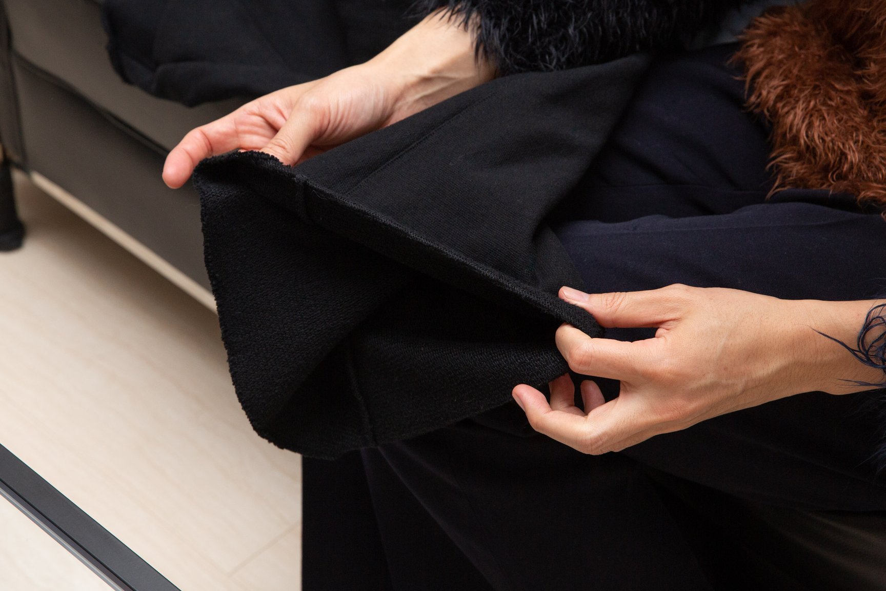 川上:そうなんですよ。裾の後ろ半分が折り返しがあって折り目がついてて、その部分を縫ってアレンジして。かなり穿いてて伸びちゃうからクリーニングにもたびたび出しているんですけど、だからこそ愛着もすごく湧いています。