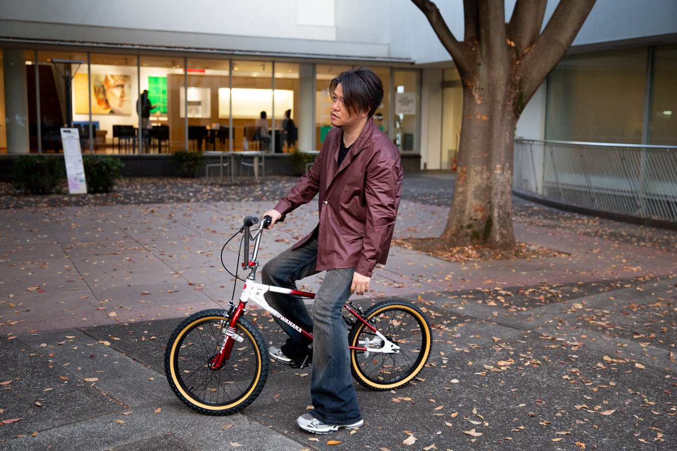 渋谷:スピルバーグ監督が「E.T.」を撮る時に、近所の子どもたちに「BMXは何がいい?」って聞いたらみんな「クワハラ」って言ったらしくて、それで採用が決まったらしいです。クワハラのBMXはデザインを含めた無骨さがいい。普段キックスクーターもテスラも乗ってるし、テクノロジーに囲まれているから、こういう超重くて、スピードも出しにくいものが逆に欲しくなるときもある。これに乗って走ってると、生の喜びがあるというか(笑)。