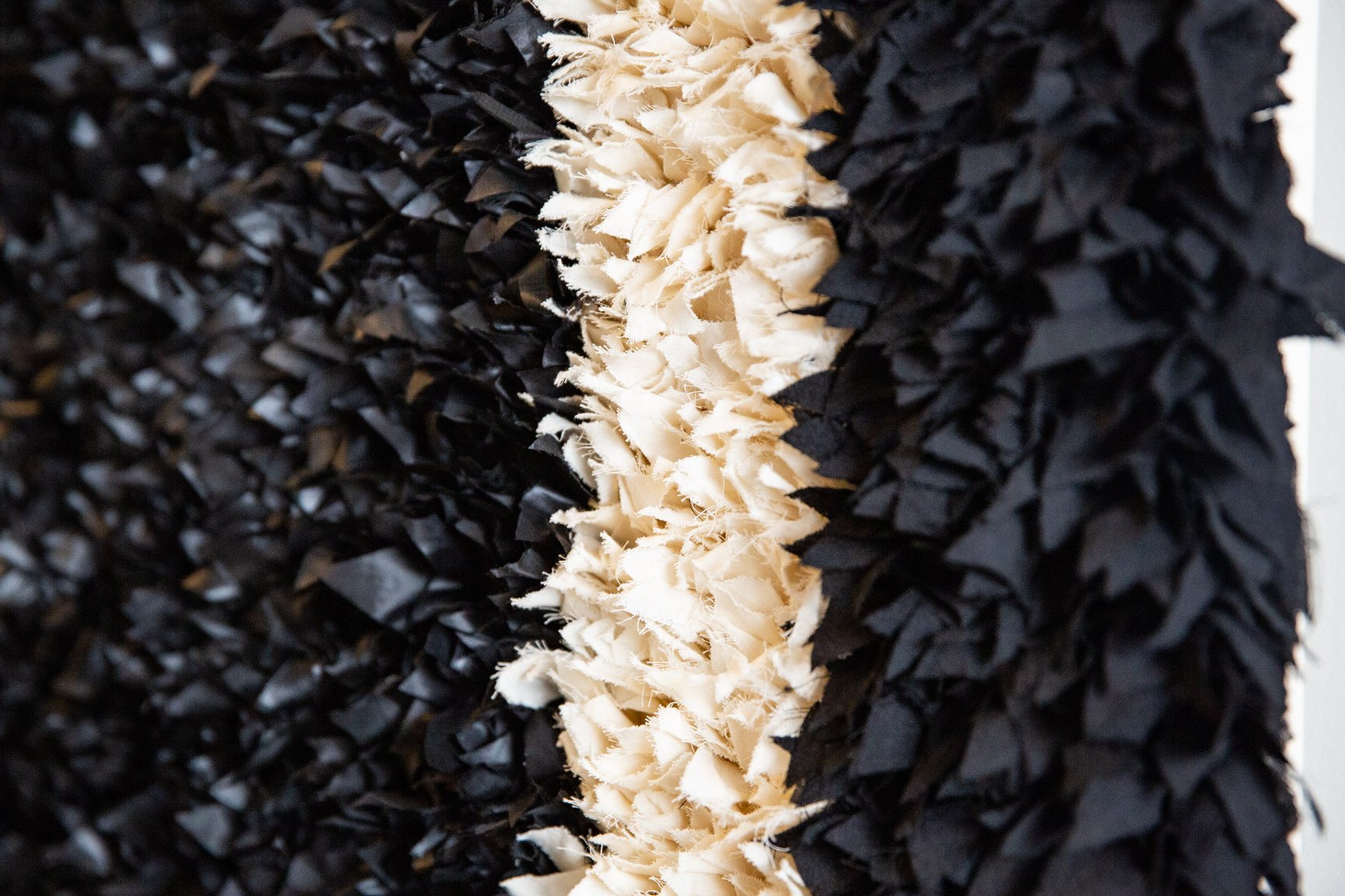 FASHIONSNAP(以下、F):1点目は玄関に飾ってある、ジョエル・アンドリアノメアリソア(Joël Andrianomearisoa)のアート作品。テキスタイルや紙、鉱物などの素材を用いた作品で知られ、2020年の「ロエベ ファンデーション クラフト プライズ」のファイナリストにも選出されたアフリカ系アーティストですね。