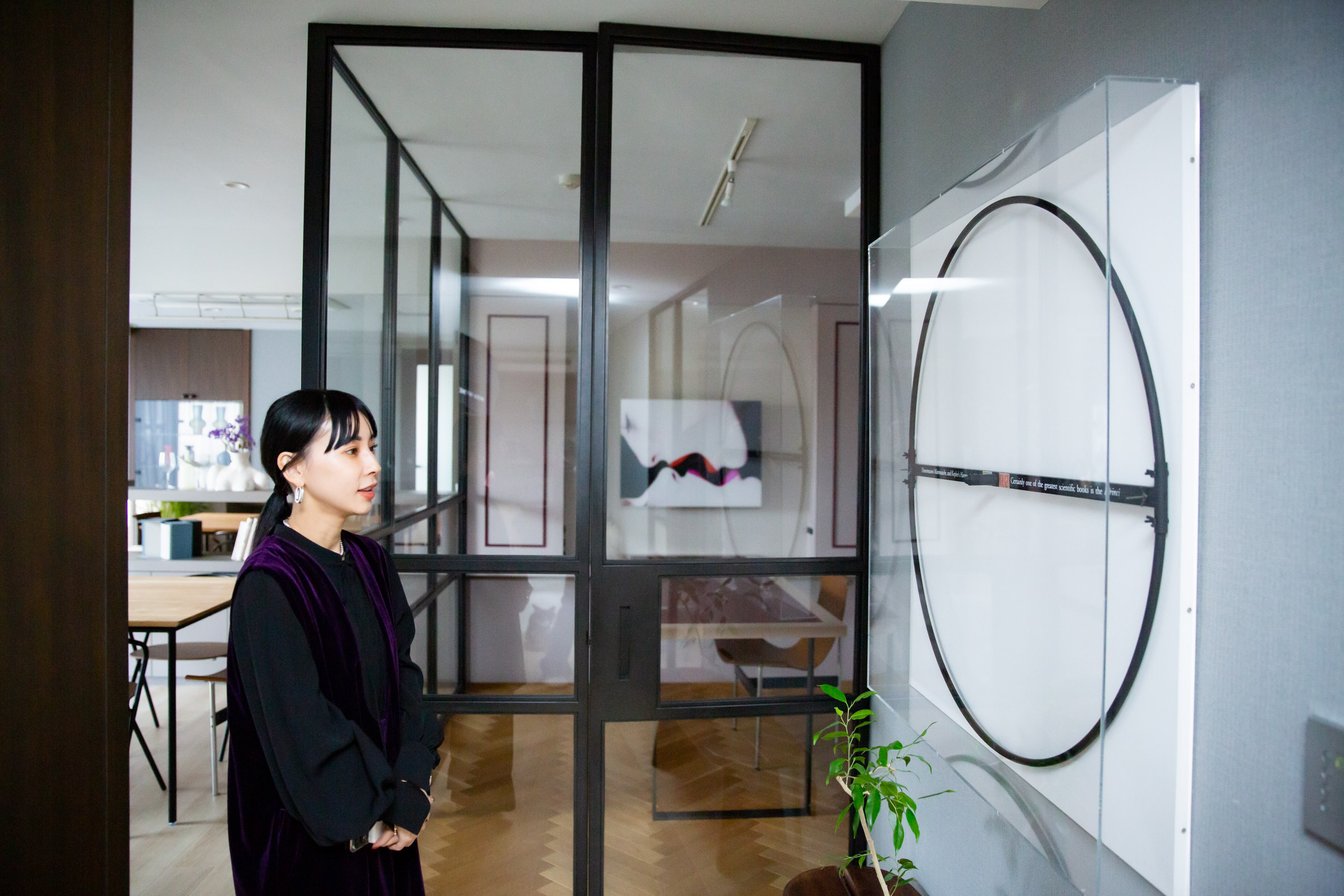 黒石:北川健次さんという日本人アーティストの作品なんですが、「この作品にはどういう意味が込められているんですか」と聞いたら、「意味はない」と言われました(笑)。でもこれもモードっぽくてかわいいなと思って買いました。このアクリルフレームの感じも気に入っています。