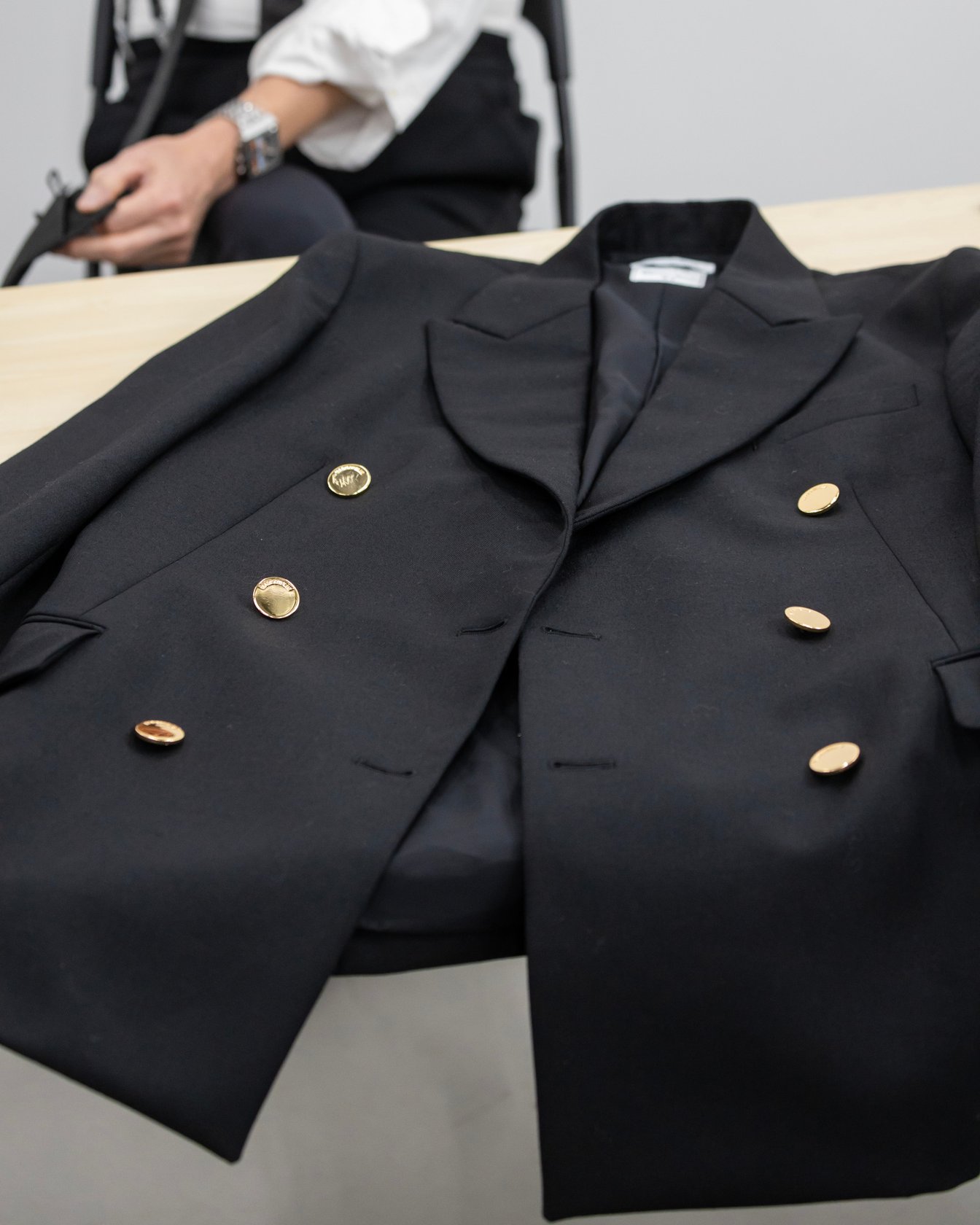 鈴木:ダブルブレストってまた来ているなと感じますね。エディ・スリマン(Hedi Slimane)が「セリーヌ(CELINE)」に移籍後、最初に発表したコレクションでダブルブレストのボックスシルエットのジャケットがあって、それ以来また再流行しているんじゃないかな。「グッチ(GUCCI)」も同じ頃にダブルブレストで、もう少しこうスクエアショルダーになったブレザーを出していたり。マディソン ブルーのブレザーは主張は強くないけど、綺麗なボックスシルエットで良いですよね。