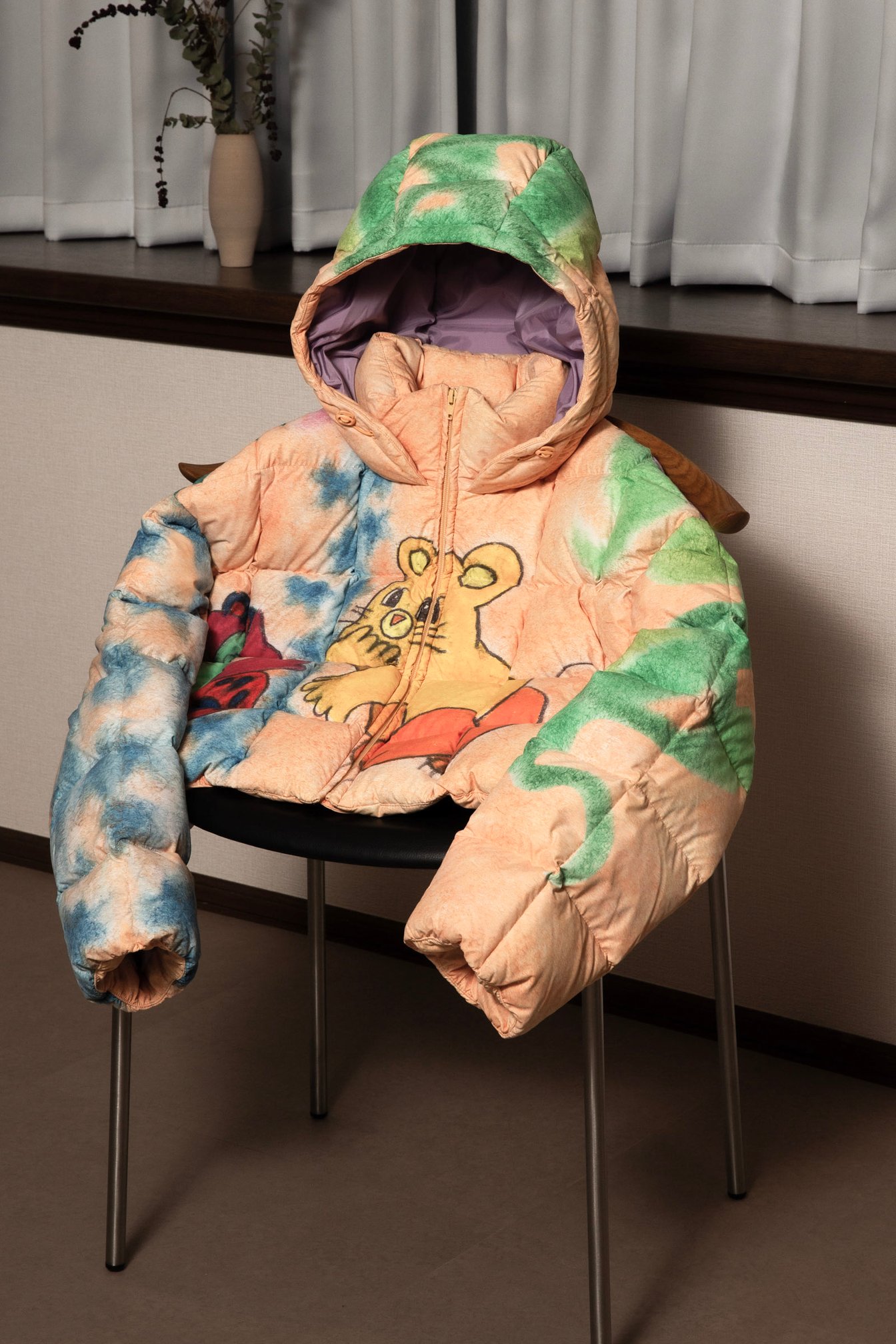 F:続いては、これまたポップなプリントのダウンジャケットですね。