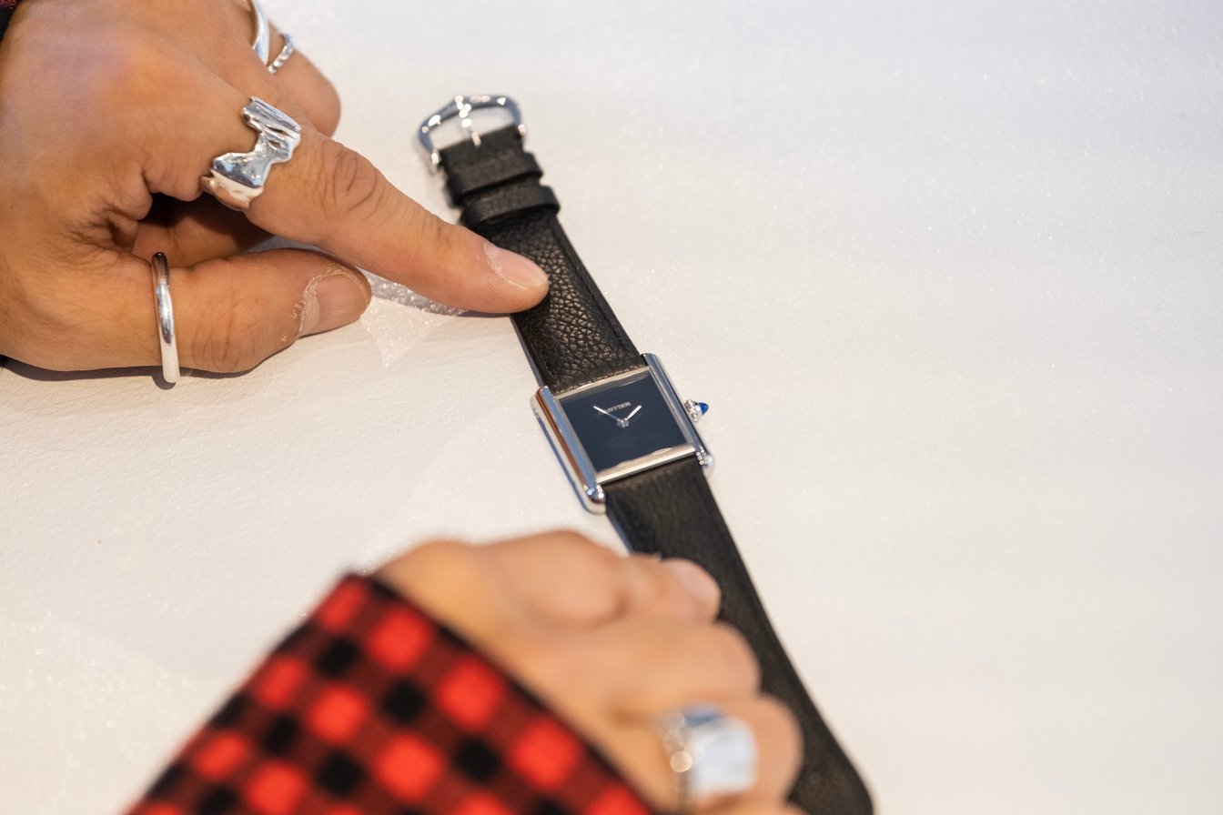 FASHIONSNAP(以下、F):一品目から大物、「カルティエ(Cartier)」の腕時計「タンク マスト」のブラックモデルですね。