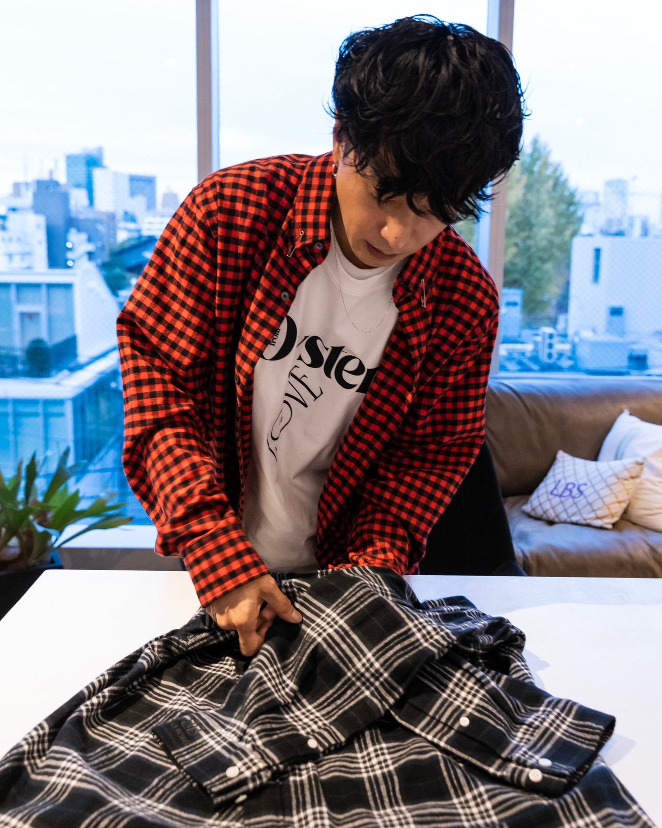 奈良:ですね(笑)。それでこのシャツは色味も、丈が短いところも気に入っています。ルックではパーカに合わせていたので、薄手のパーカと一緒にコーディネートしました。