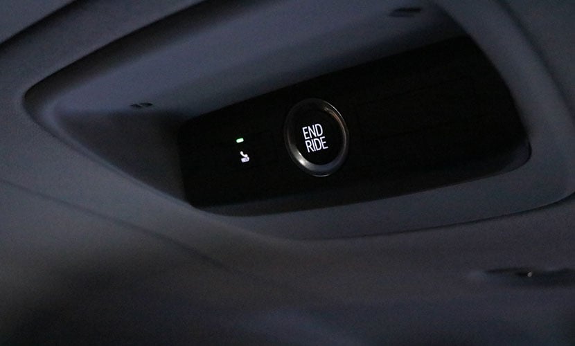 黙っていても一向に止まる気配がないので、車両の天井部分に設置されている “END RIDE” ボタンを押して止めてもらう事にした。これは文字通りの “強制終了” ボタン。