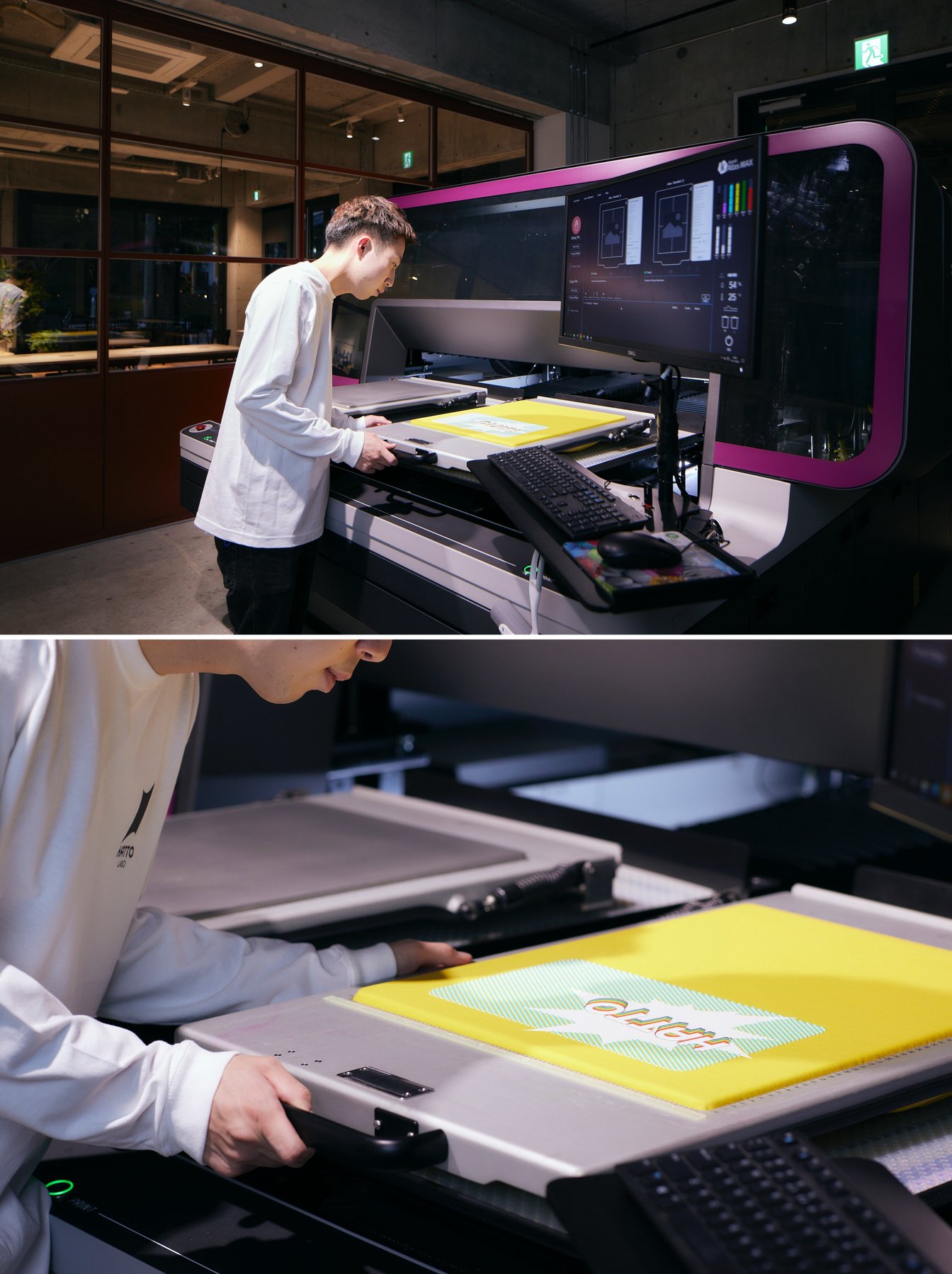 Atlas MAXは1点から注文可能な最新オンデマンドプリンターで、企業やアーティストの印刷依頼に応じて、必要なときに適切な量を生産できる。この最新プリンターから、「ファッションの廃棄問題を考えるきっかけになれたらいい」と柴田さんは話す。