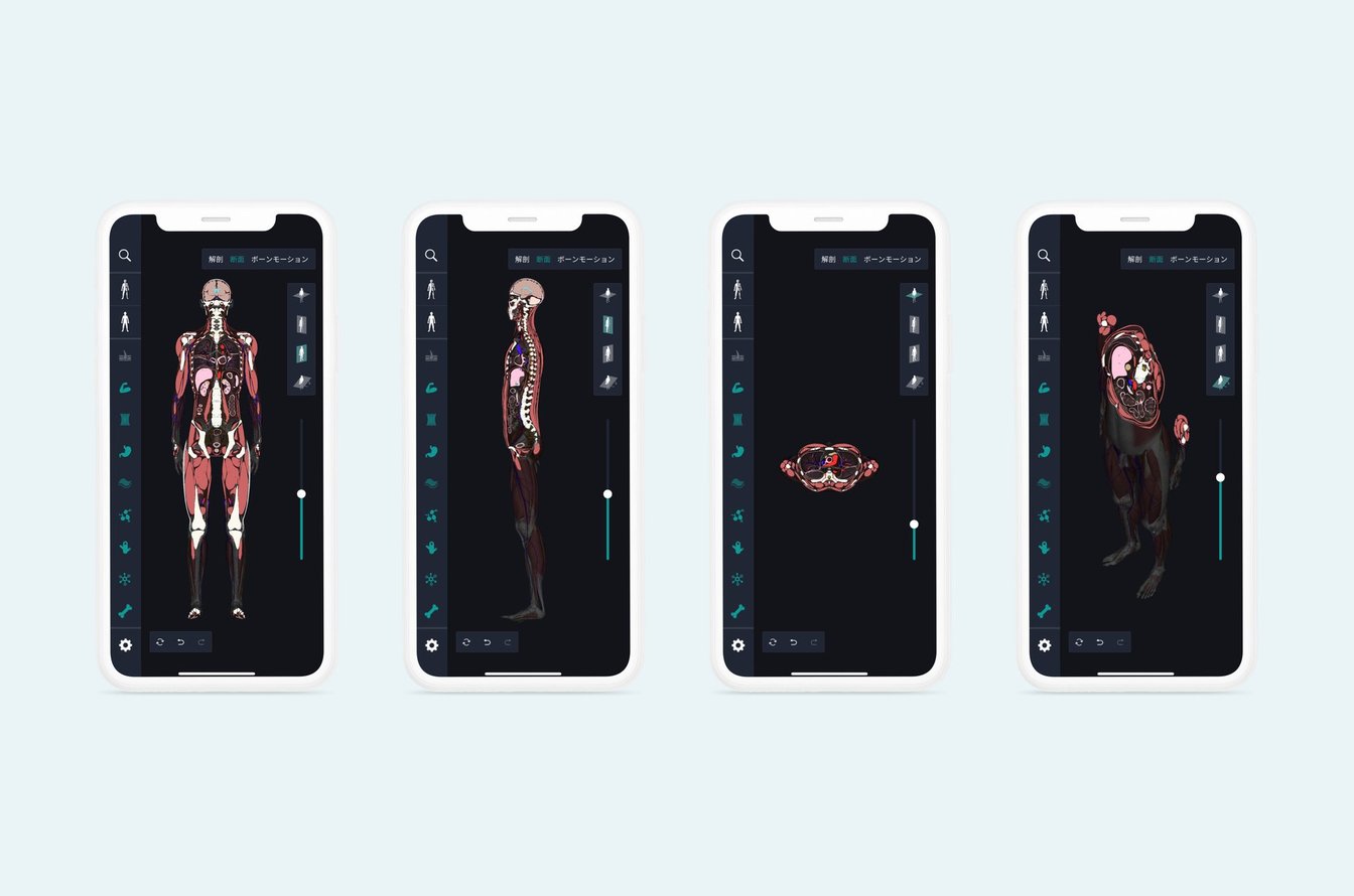 10年以上かけて解析されたCT・MRIデータが活用されており、スマホ一つで詳細な人体の構造を把握することが可能となっています。