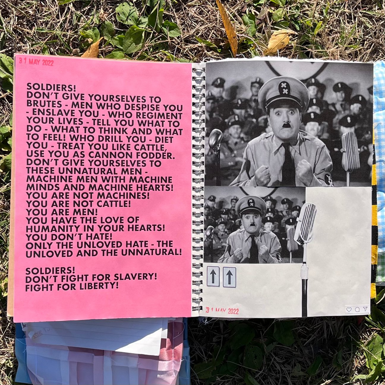 デビューコレクション「TSTS PROPAGANDA」では、1940年公開の映画「独裁者(The Great Dictator)」およびチャーリー・チャップリンをモチーフに、ブランドの核として存在するシュールでシニカルな世界感を提案。ポップなカラーリングのギンガムチェックやボーダー、誇張されたようなシルエットといった、幼児性を感じさせるようなモチーフをベーシックなワードローブに落とし込み、「緊張と緩和」や「二面性」を表現したという。