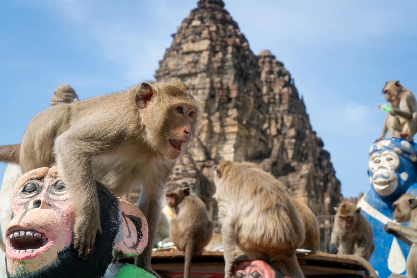 昨年11月、タイ中部で開催されたモンキー・ビュッフェ・フェスティバル。最悪の旅行先だと思うひともいる一方で、30年以上毎年開催されてきたこの狂乱に参加するためにタイの首都バンコクから北に約150キロほど離れたロッブリー(Lopburi)を訪れる物好きな観光客も少なくない。このユニークな伝統は、街の遺跡で長年暮らしてきた数千匹の猿に敬意を払うべく、1989年以降、毎年11月の最後の日曜日に開催されてきた。