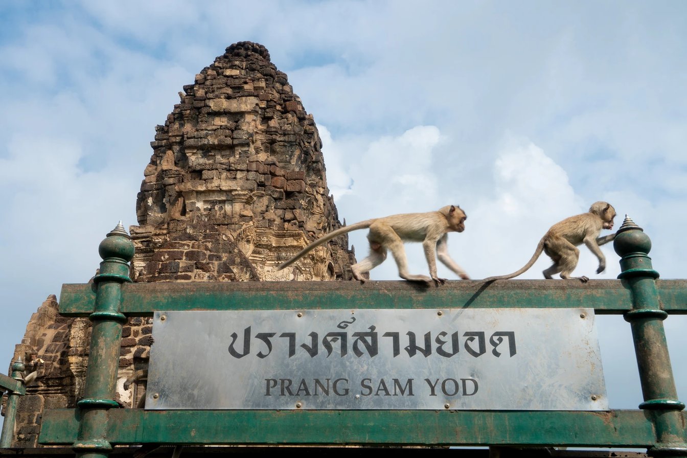 「気をつけて!」と私は近くの観光客グループに向かって叫んだが、時すでに遅しだった。わずか数分後には、プラーン・サームヨートの遺跡の前のビュッフェ会場は茶色の毛皮、尻尾、鳴き声が飛び交う無秩序な嵐と化した。