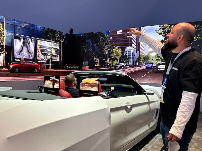 Samsungによるドライバーをサポートするカーモニターのデモの様子