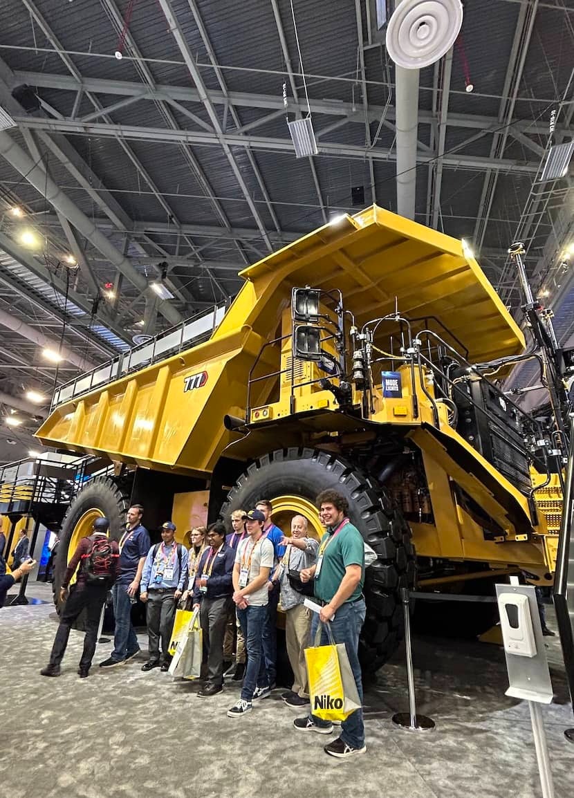 圧倒的な存在感のCaterpillarが展示したダンプトラック(これでも小さい方らしい)