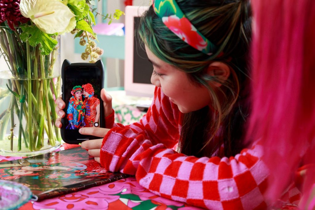 あきほ:学校の授業や課題に追われすぎて2人での活動ができない時期もありましたが、お互いずっと一緒にできるタイミングを探っていました。3年生になってコロナが大流行して、授業がすべてストップした時、「今だ!」と思いました。端切れを使ってカラフルなマスクを作って販売したら、皆の気持ちが少しだけ明るくなるかもしれないと思ったんです。軒並みお店が閉まっていても自分たちが持っている端切れを使えばいいし、コストも抑えられる。ブランドを本格的にスタートさせるきっかけとしては最高じゃん!と。Nodokaの“doka”と、私の苗字である“夏(ka)”をあわせて“DOKKA vivid”。2人でずっと続けてきた中国民族舞踊の影響もあって、自然と今のテイストに。覚悟を決めるためにバイトも辞めて、背水の陣で臨みました。