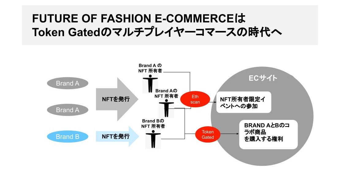 まずはクリプトに触ってもらって、NFTを保有して、ウォレットをインストールしてもらうことが第一歩ではないでしょうか。ブランドのマーケティングがどういうふうにシフトしていくのか考えること自体が僕は“Future of Fashion EC”の中身だと思っています。