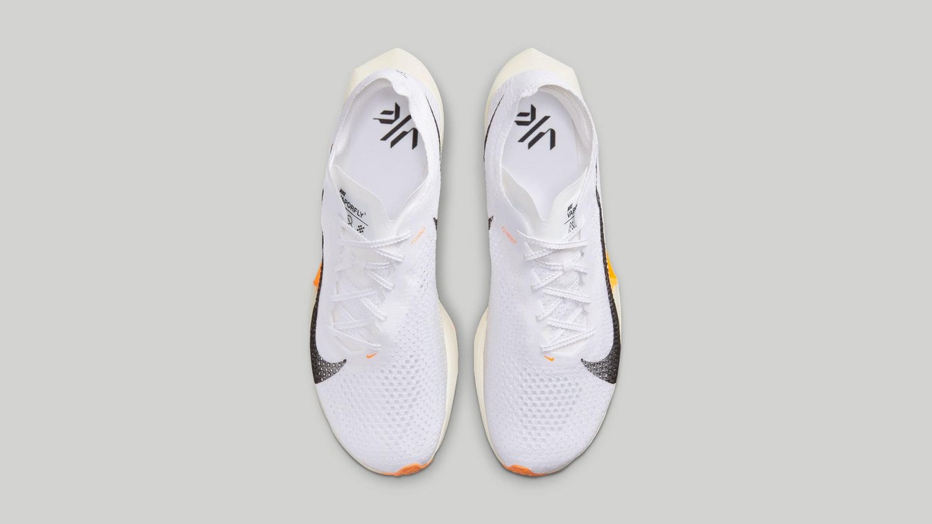 前足部は、シューズ内側に曲線を描くようにデザインをアレンジ。安定性が向上したほか、ライド感のコントロールをしやすいように改良された。ファーストカラーは、ズームエックス ストリークフライ(ZoomX Streakfly)やエア ズーム アルファフライ ネクスト% 2と同様に、ホワイトを基調にワンポイントでオレンジを取り入れたプロトタイプカラーを採用した。