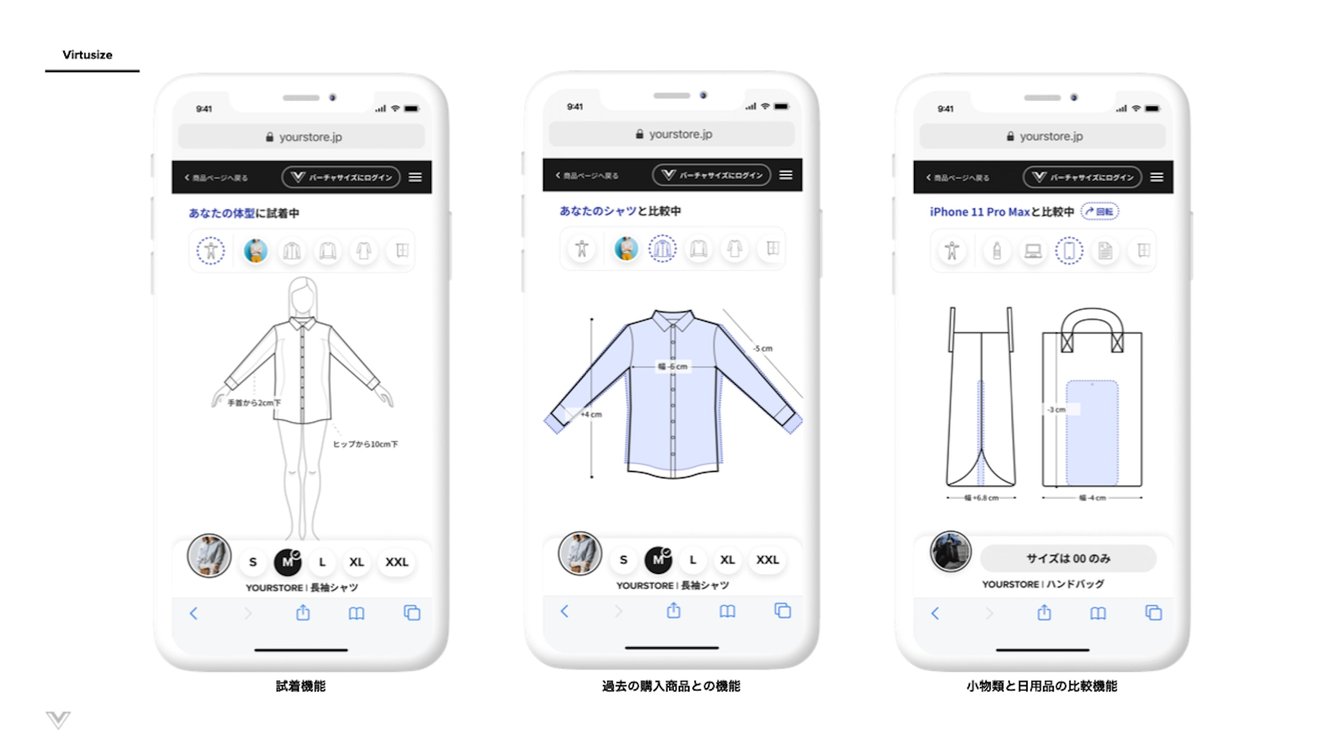 また、過去にVirtusizeのパートナーサイトで購入経験のあるユーザーは、過去の商品と今見ている商品とを視覚的に比較することができる。ユーザーは正しいサイズを提供することで、返品率の削減、購入率・ユーザーのライフタイムバリューの向上につなげている。現在は、ユナイテッドアローズ、オンワード、マッシュホールディングスなど、ファッションリーディングブランドを筆頭に多数のクライアントが150を超えるサイトで導入しており、高い評価を受けている。Virtusizeではオンライン試着とは別に、Virtusizeで作成された身体プロフィールを使って「FittingRoom」というレコメンドエンジンも提供している。FittingRoomはユーザーの好み、過去の購入履歴を活用し、登録された身体プロフィールにマッチするパーソナライズされた商品を提供している。