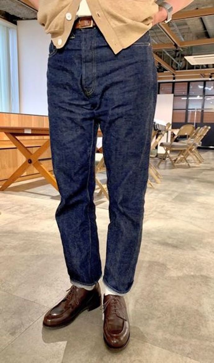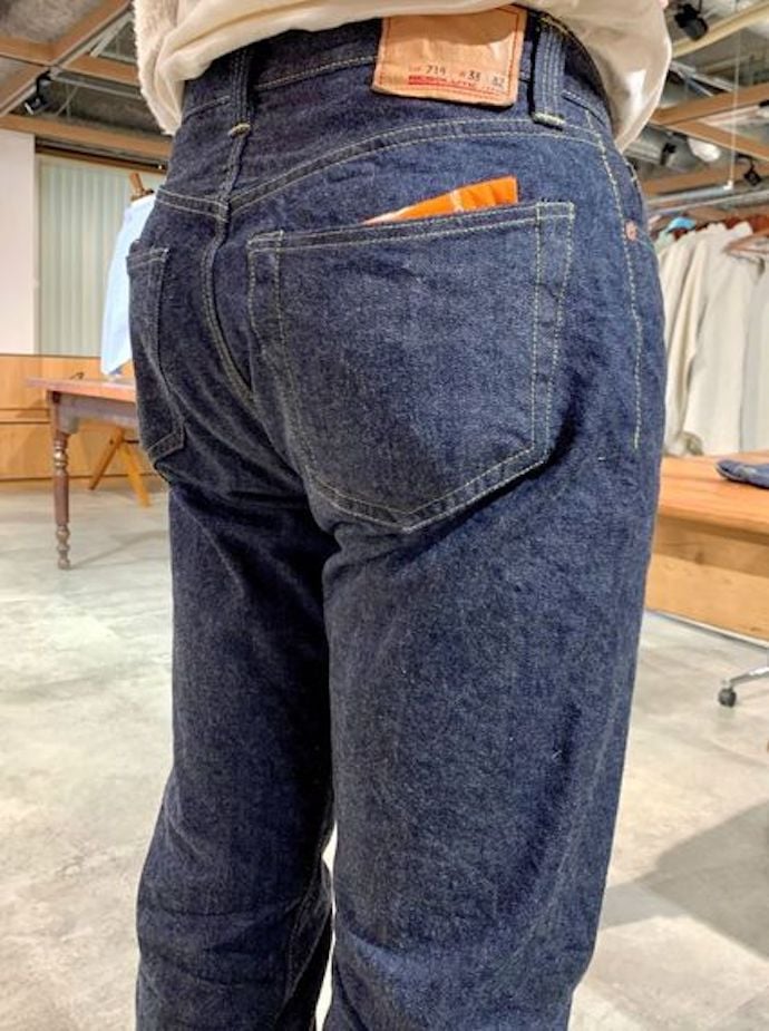 「大戦モデルと一口に言っても、工場の違いでディテールや形に様々なバリエーションがある。714はその中でもきれいめなシルエットを持つ個体を参考にした」と林さん。股上が深く、ヒップを包み込むようなシルエットは、スポーツマン体形や、かっぷくの良い大人に合うという。