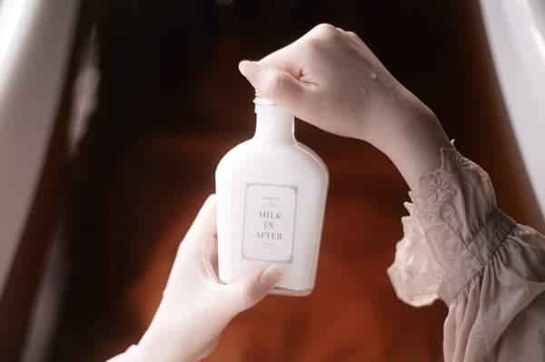 一方の「ミルク・イン・アフター」を入れればミルク風呂に。両方を合わせればミルクティー風呂が楽しめますよ。