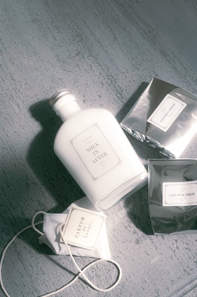 「ミルク・イン・アフ ター」は、アプリコットやヴァニラなど、思わず幼少期を懐古してしまうようなアロマでつくられた香りですよ。