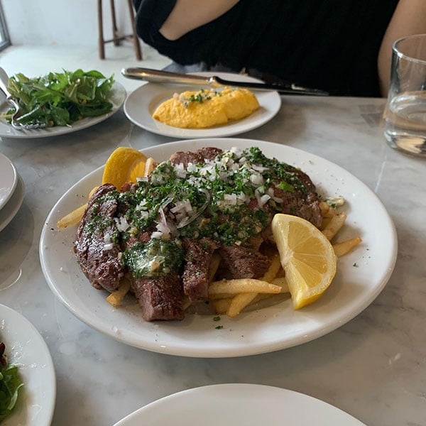メイン料理の1つ、『ステーキフリット』(3900円)はボリューミーなので、何人かでシェアするのにもってこいですよ。