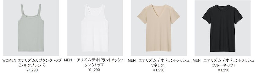 今年の「エアリズム」は機能もデザインもアップデートされ、従来モデルから強化した消臭機能で汗の不快感を低減。光沢感のある美しいシルクをブレンドした「エアリズムリブタンクトップ」(1,290円)やメッシュシリーズをアップデートした「エアリズムデオドラントメッシュ」(1,290円)、シームレスに進化した「エアリズムキャミソール」(990円)などが登場。さらにメンズの定番アイテムもリサイクルポリエステルを使用した「エアリズムTシャツ」(990円)や、形が崩れにくく洗濯後も襟がよれにくい仕様の「エアリズムコットンクルーネックTシャツ」(1,290円)がラインアップする。