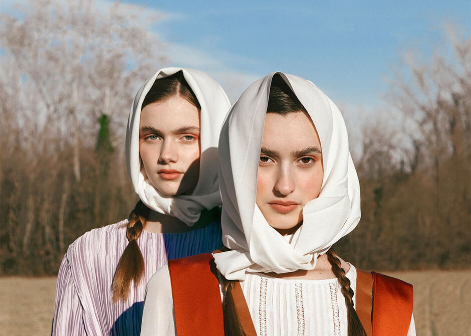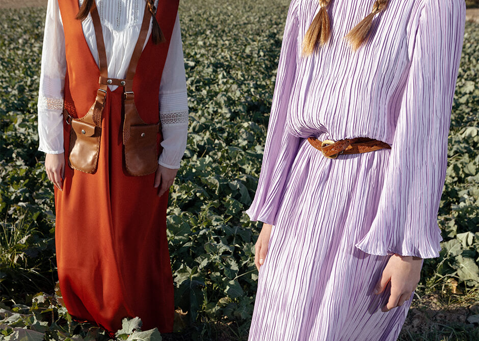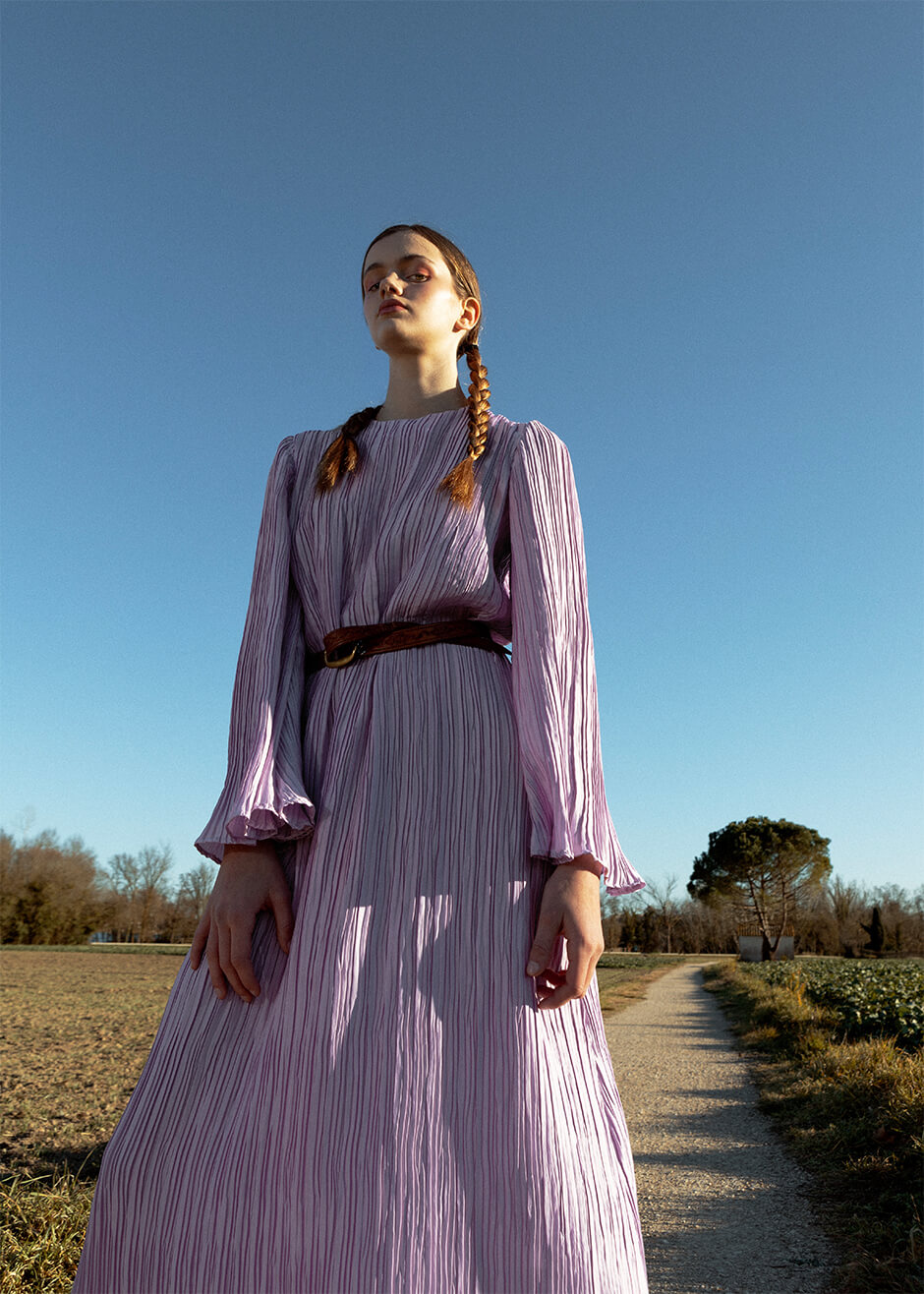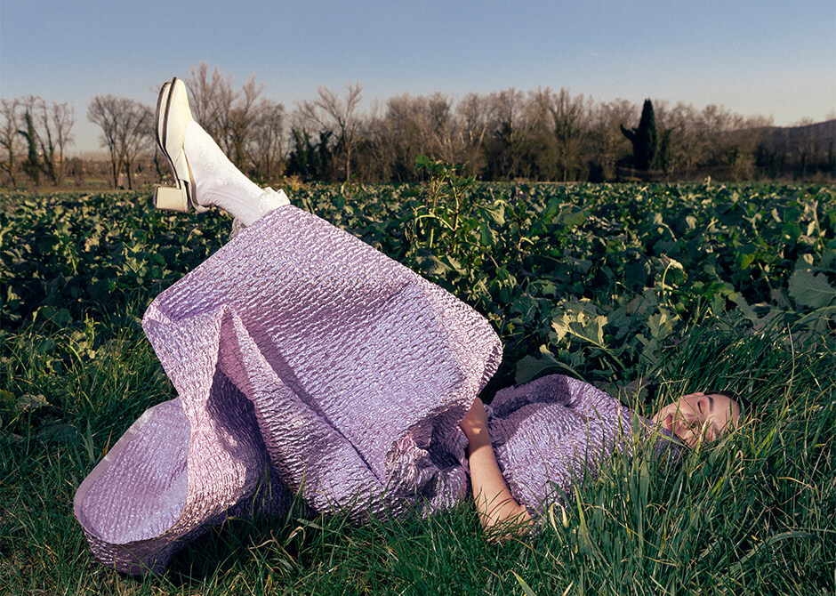 平原や田園地帯は、鮮やかな色やティンセル素材には不釣り合いなように思えましたが、このスタイルの衝突が生み出した不調和は、自然の中でのファッションの在り方について独創的な視点を与えてくれました。