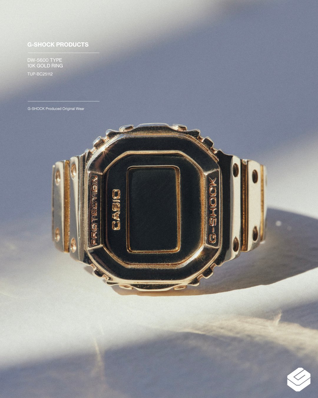 このほかに、Gショックの40周年を記念した10Kのゴールドリング「DW-5600 TYPE 10K GOLD RING」(15万4000円/いずれも税込)も製作。定番モデルの「DW-5600」のディテールを再現し、15号、17号、19号の3サイズを用意する。4月12日からカシオの公式オンラインストアで取り扱う。