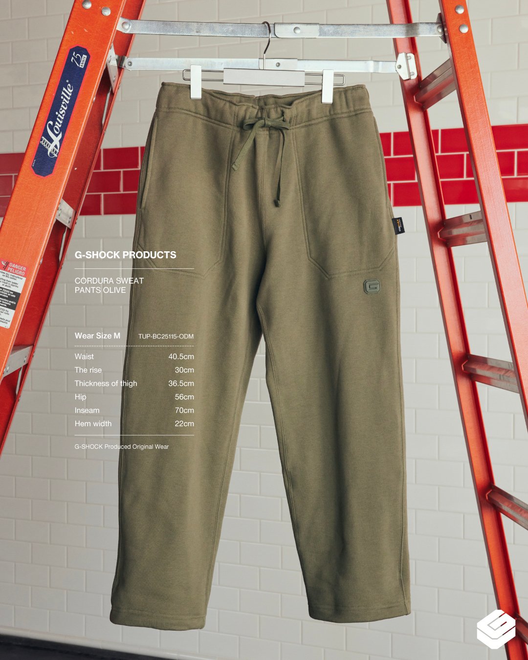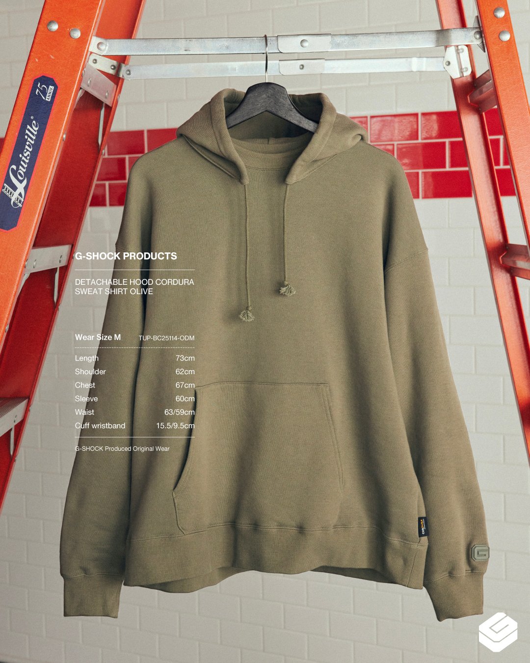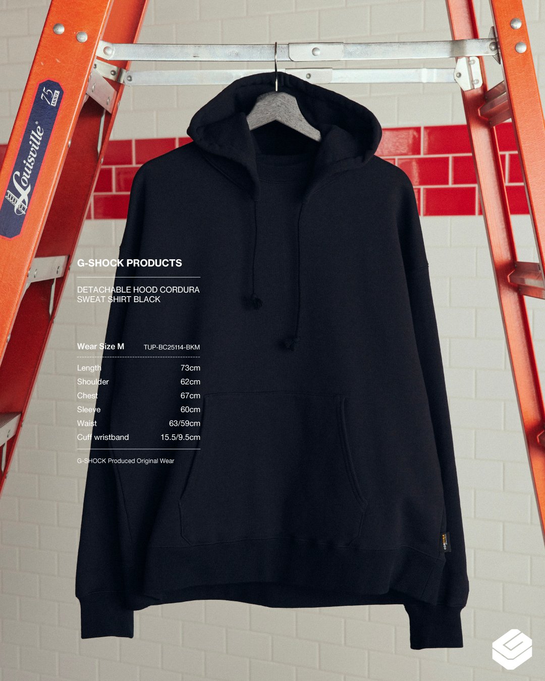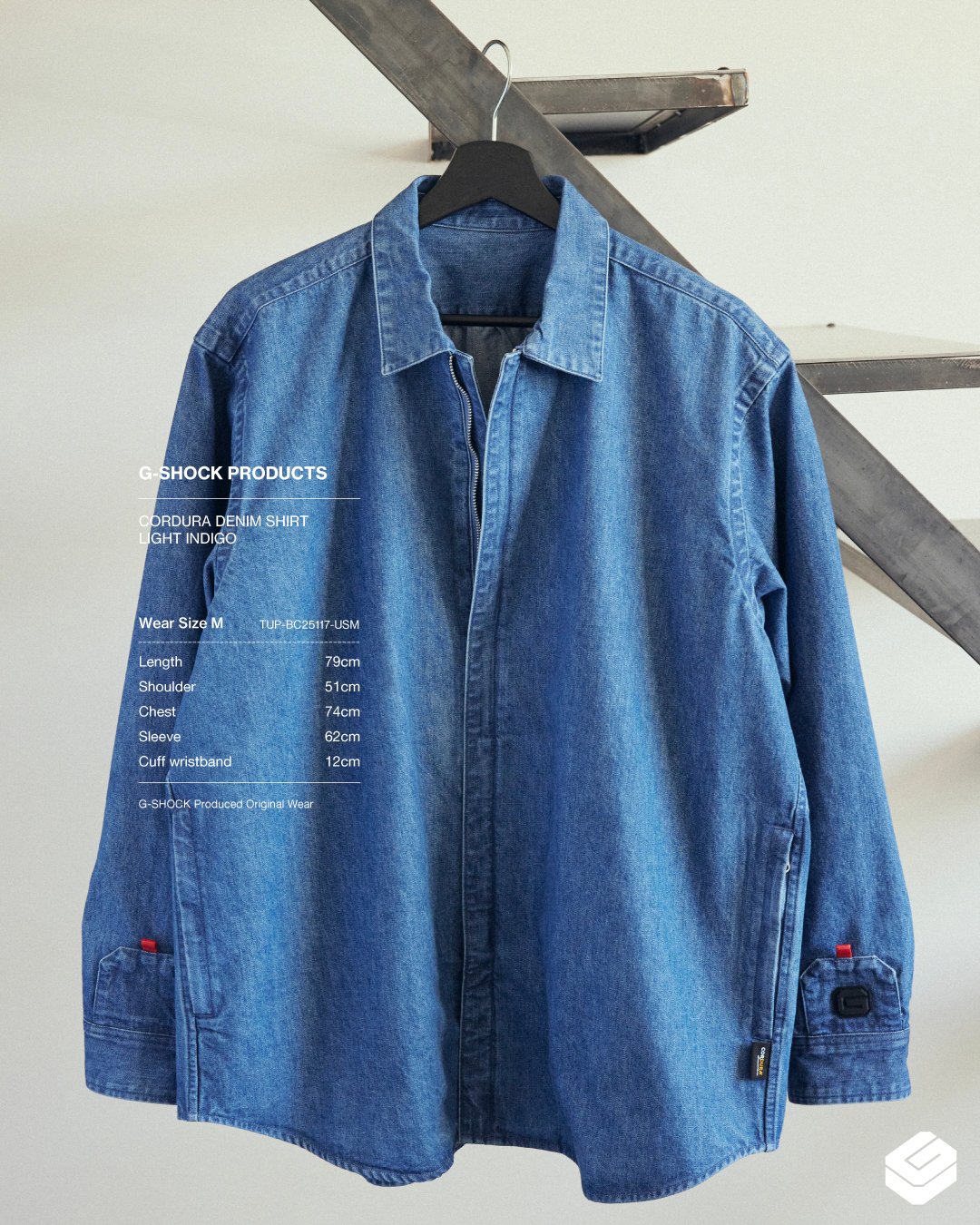 新作は、コーデュラ(CORDURA®)糸を用いた5型のアイテムをラインナップ。フルジップでブルゾンとシャツの両方の用途で着用できるデニムジャケット「CORDURA DENIM SHIRT」(2万7500円)や、「DW-5600」から着想を得た8角形のステッチをあしらったセットアップのスウェットシャツ「DETACHABLE HOOD CORDURA SWEAT SHIRT」(1万9800円)とスウェットパンツ「CORDURA SWEAT PANTS」(2万2000円)、ヘビーウェイトのTシャツ(8800円)を揃える。
