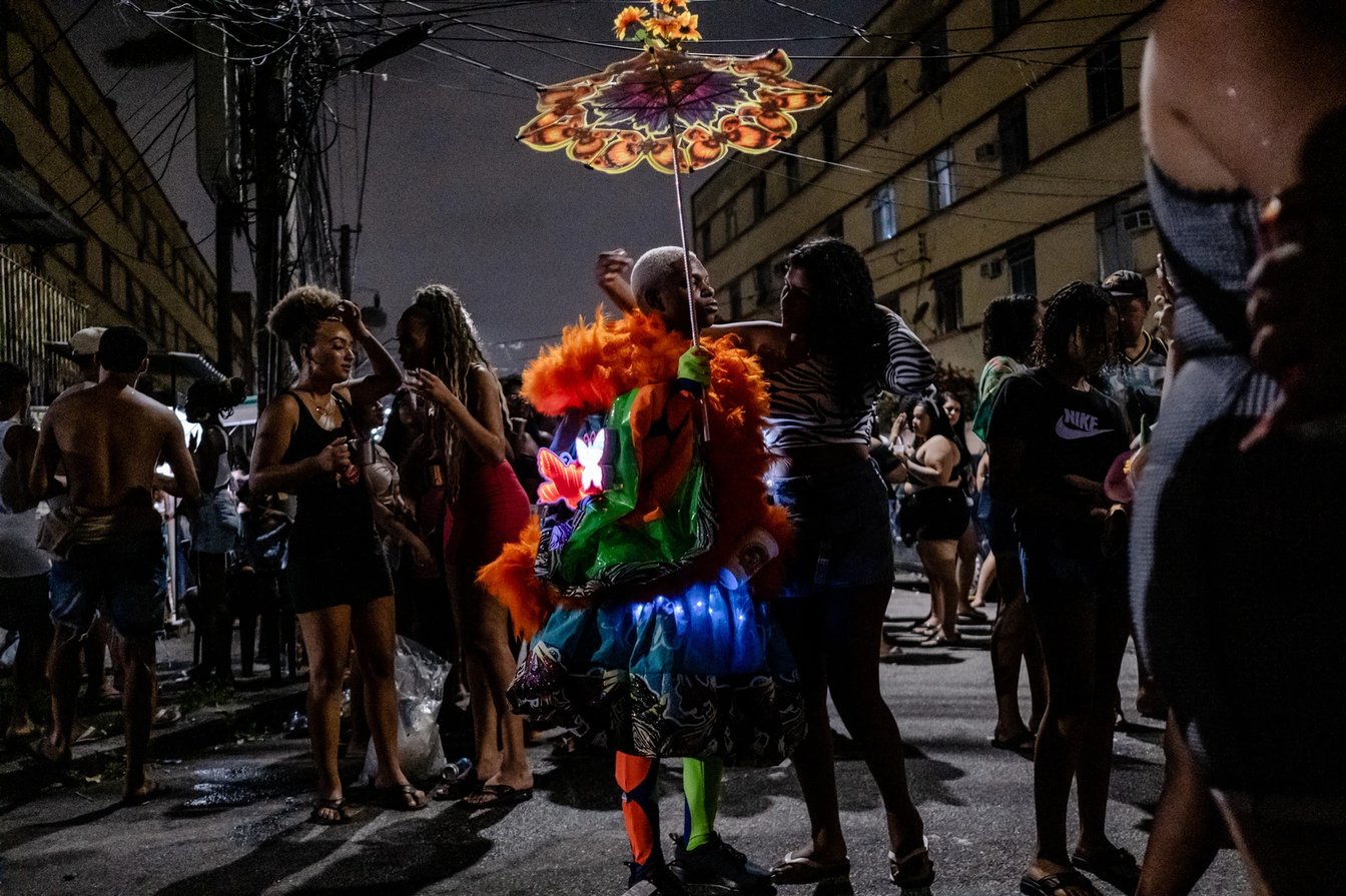 リオの北部や西部に向かうと、ストリートカーニバルは、早朝までファンクのビートに合わせて踊り続け、数百人の〈バチボラ(直訳でボールを叩く者)〉たちが観客を魅了し、それと同じくらい怖がらせる、大規模なご近所パーティーへと姿を変える。