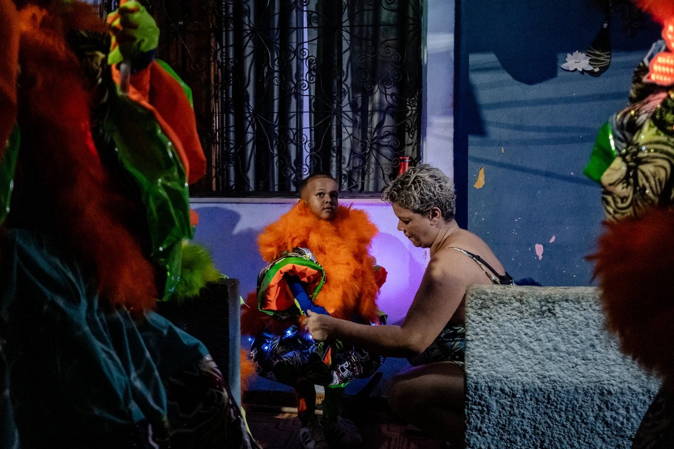 「ずっとカーニバルから距離をとり、関わらないようにしていた」とロドリゲスは説明する。「結婚して子どもを産み、保守的な生活を送っていた」。数年前、「暴力的な」環境で夫と別れたあとにすべてが一変した。カーニバルとの関わりや自己表現の場を取り戻すなかで、彼女は自分と同じ「自由で好奇心旺盛な」女性たちのコミュニティに出会った。