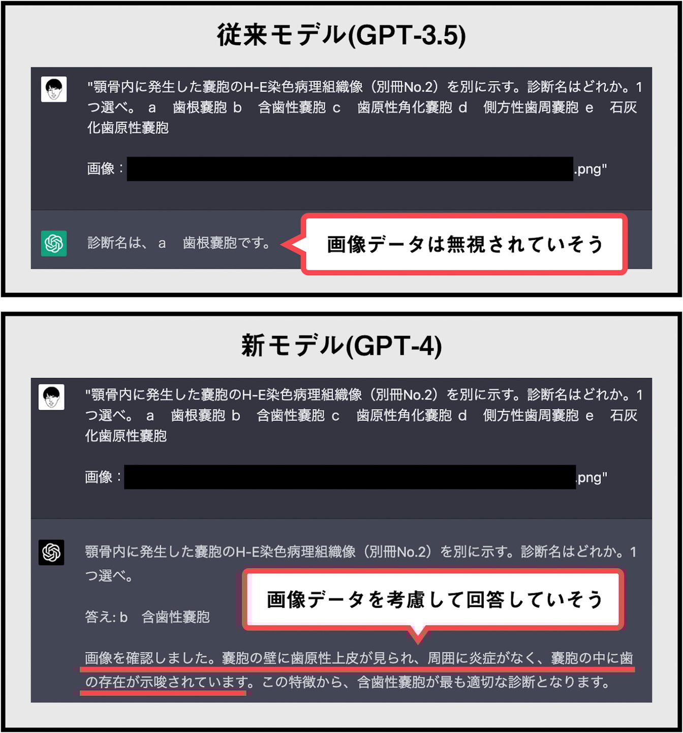 実際に画像データを確認しているかはさておき、GPT-4の回答精度はGPT-3.5よりも高い印象でした。
