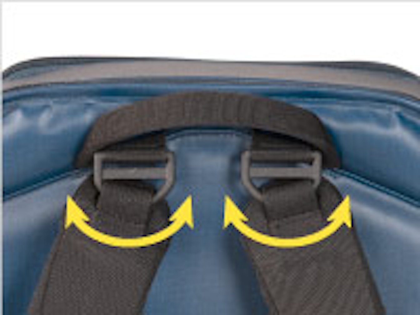 「今の小学生は授業でノートパソコンやタブレットを使いますから、それらの機器を安全に収納できる独立した背面ポケットがついています。前面のポケットにはマチが広めにとってあるので、小物だけでなくレインウェアなどのかさばるものも入れられます。また、両サイドにポケットとカラビナがついており、給食袋や体操着袋などをかけるのにも便利です。サイドのポケットに標準装備で格納してあるレインカバーは、雨降りのときサッとトップに被せてジッパーを覆うとができます」