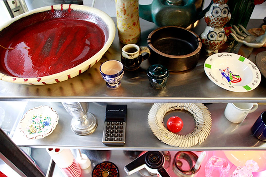 民芸品やお土産物があると思えば、デザイン家電やノスタルジックな雑貨、アノニマスな手芸作品などが並ぶ多岐に渡る品揃え。一見何の脈絡もなく見えるセレクトに、店主の興味やこだわりが垣間見られる。