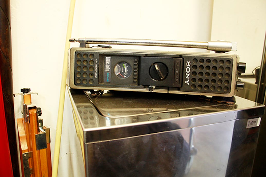 無骨な見た目のトランシーバー(無線)は昭和時代のSONY製。