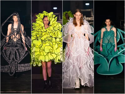 また、太古の土器の造形や装飾、自然と対峙する人々の営みから着想を得たドレス「JOMONJOMON」の新作や、布を使用したソフトスカルプチュアも展示される。