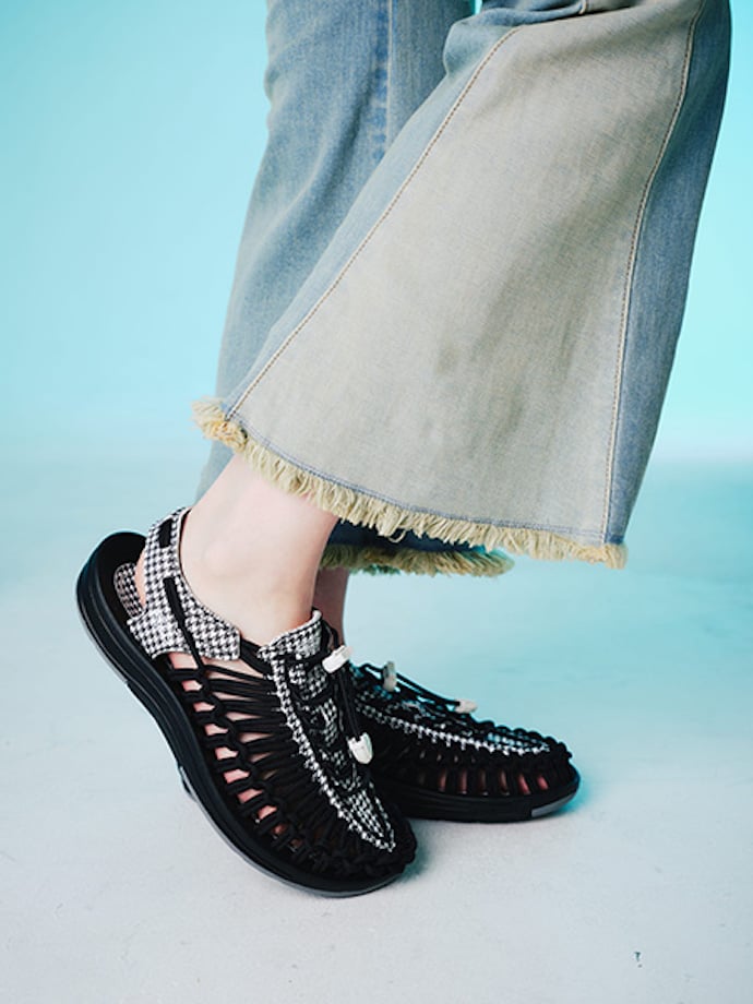 「Keen UNEEK Chidorigoshi」では、そんな「UNEEK」を、タウンユースにも合わせやすいように“千鳥格子”でアレンジしています。