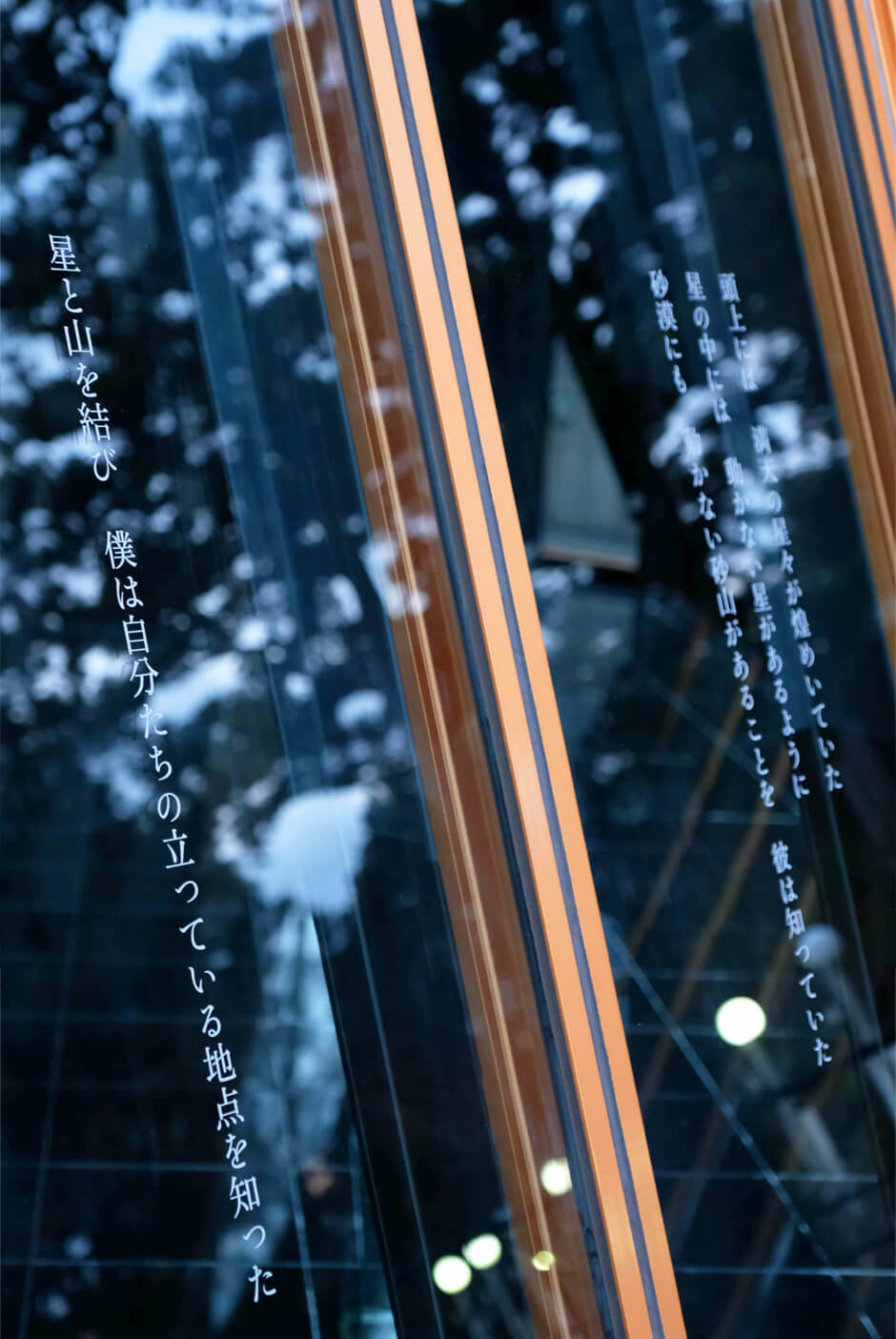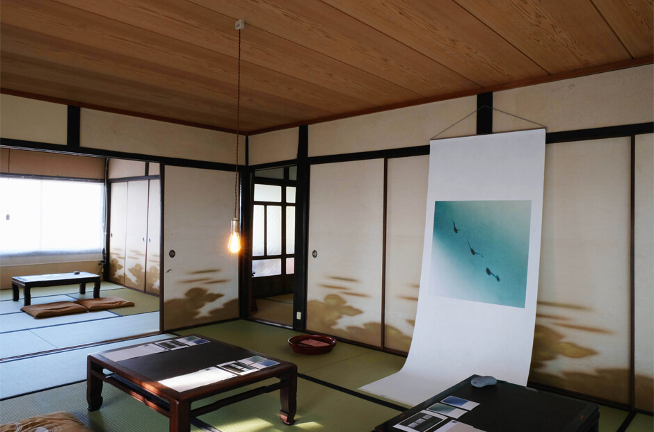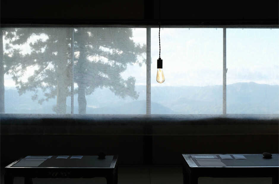 北極星を取り巻く星々のようにゆっくりと回転する音、写真や言葉が散りばめられたその空間の中には、会いたい人に想いを届けるための場「手紙処」が設えられ、原と津田が制作した便箋と葉書が設置された。