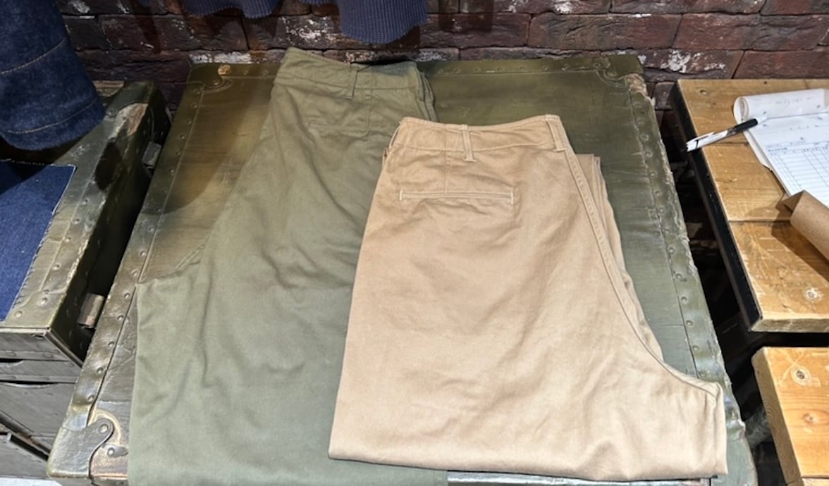 今後はビンテージ品を解体して再現した生地のアイテムを増やし、ラストリゾートをシリーズ化していく計画だ。23年秋冬には、40年代のビンテージ品にハサミを入れ、解析したデータを元に開発した生地のチノパンを新たに追加する。価格は税抜き3万円と決して安くはないが、自信がある。展示会でのバイヤーの評判もいい。