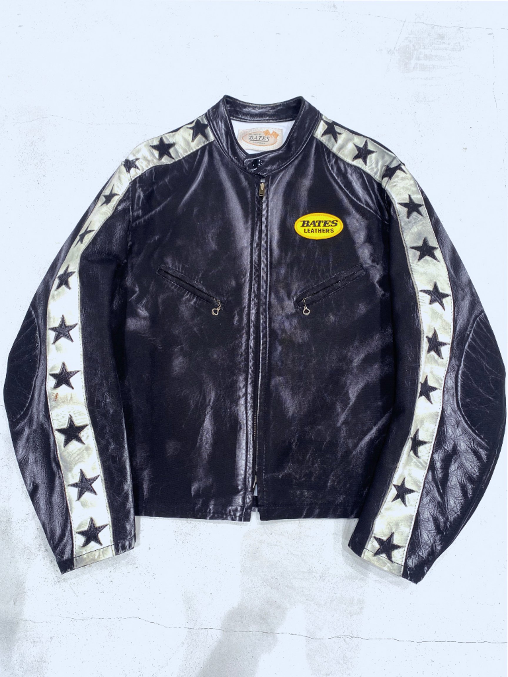 コラボでは、ライダースジャケットやデニムパンツなど全4型を展開。「ベイツ(BATES)」のライダースジャケット(14万8500円)は、ヴィンテージレザージャケットを使用し、ヴィンテージならではの使い込まれたレザーの質感や光沢感をコットンキャンパスに転写した。黄色の「BATES」のネームパッチと首元のブランドタグは、ベイツのオリジナルのパーツを採用している。
