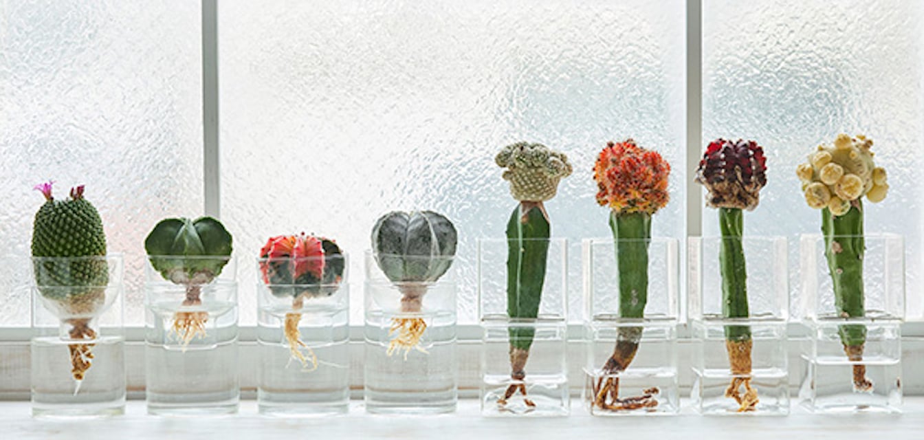 中でも「水だけで育てるサボテン」(シリンダー型 税込8800円/キューブ型 税込1万2800円)は、それぞれ個性的なフォルムがとってもかわいいですよね。
