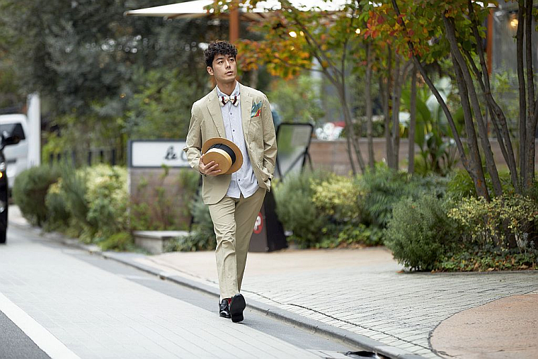 シアサッカーのノーカラーにもなるジャケットも初めて企画