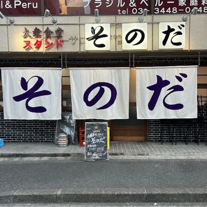 まず一つ目にご紹介するのは、大きな暖簾がどこか懐かしいアットホームな雰囲気を感じさせてくれる「大衆食堂スタンド そのだ」。