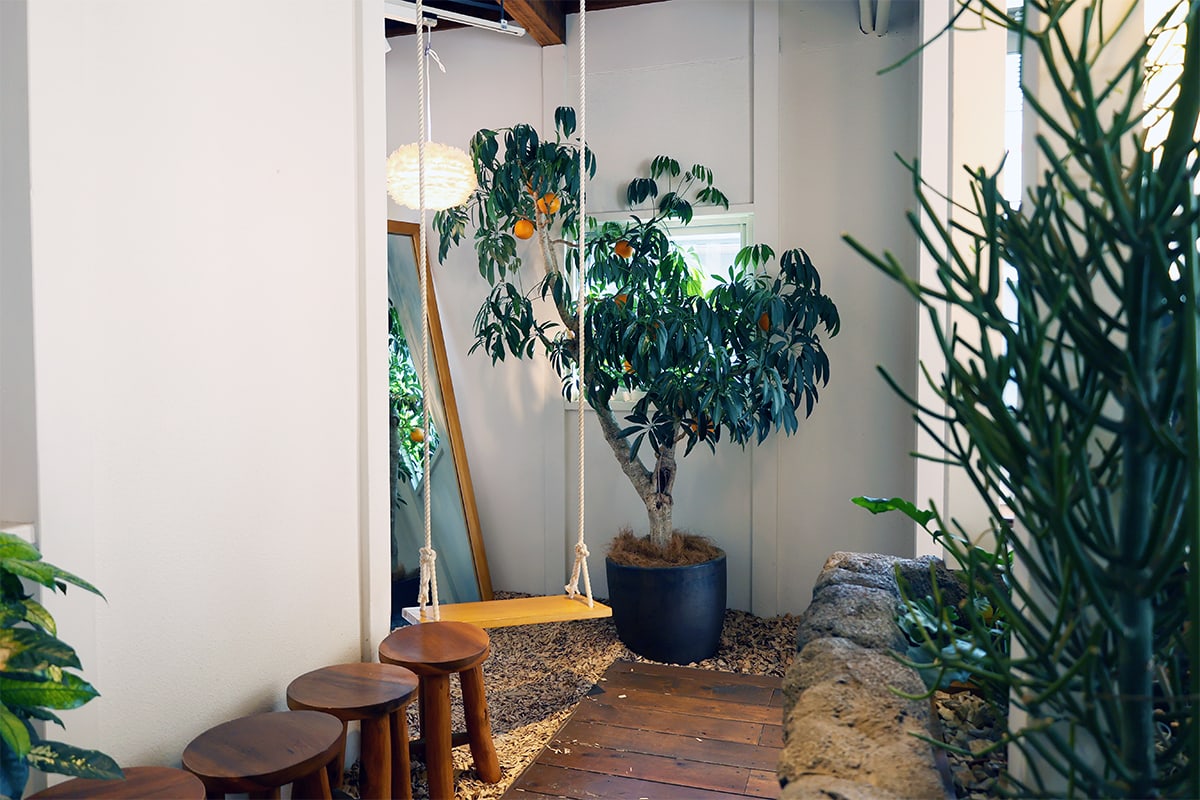 キャットストリートを抜けた先の閑静な通りに佇む、白を貴重とした一軒家。韓国ドラマのワンシーンを切り取ったかのような、洗練された外観である。もちろん店内もとってもおしゃれ。インスタの投稿では、こちらのブランコにお子さんを乗せて写真撮影をしている人も。これは映えること間違いなしだ。