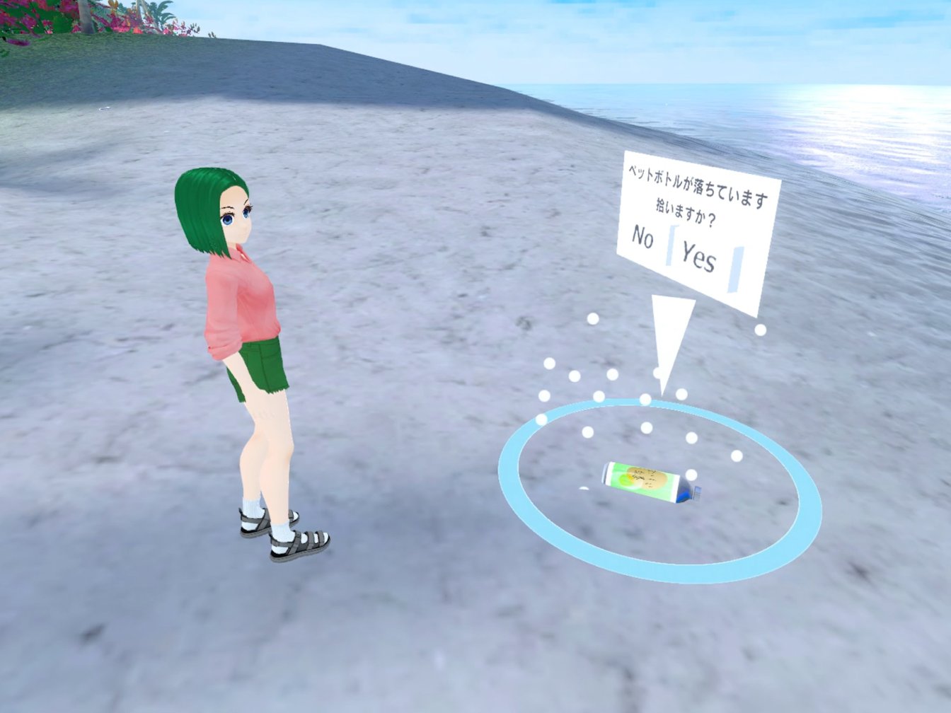 具体的な企画としては、大きく2つあります。第一に、バーチャル空間上でゴミ拾い体験ができる『バーチャルビーチクリーン活動』が挙げられます。