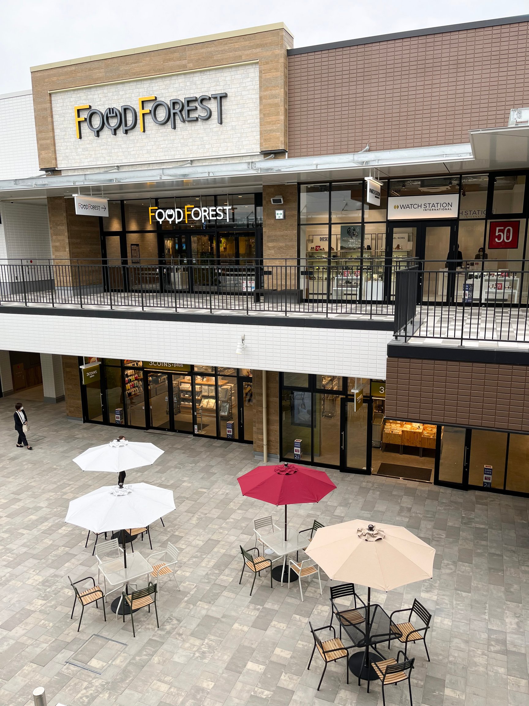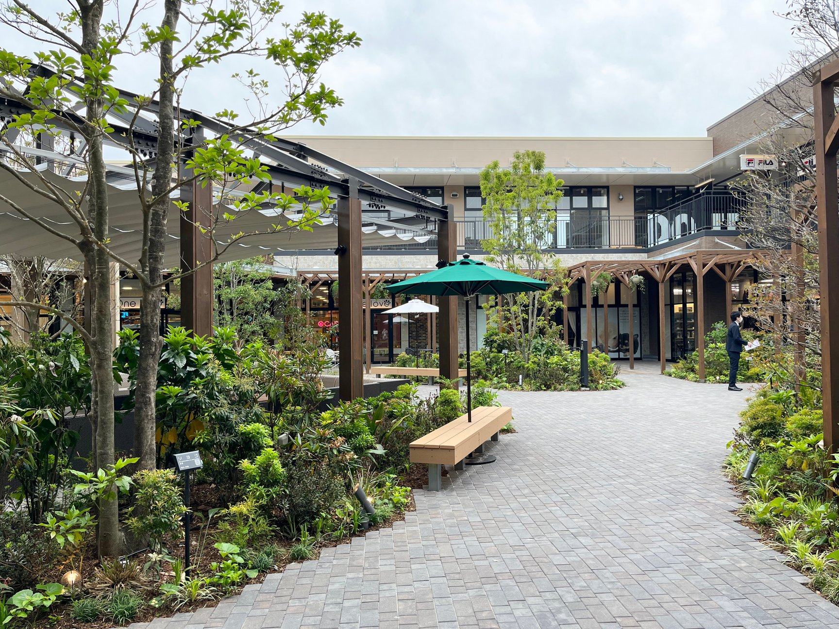 近隣の公園や自然と調和した施設デザイン、ペットや子連れファミリーの散歩コースを想定した道路や休憩施設の整備にも注力した。モノ消費が主力のアウトレットモールでありながら、これまでにないテナント構成や地域共生を意識する新しいコト消費のコンテンツを強化した「地域創生型」アウトレットモールが今後、どのように地域に根付いていくのか注目だ。