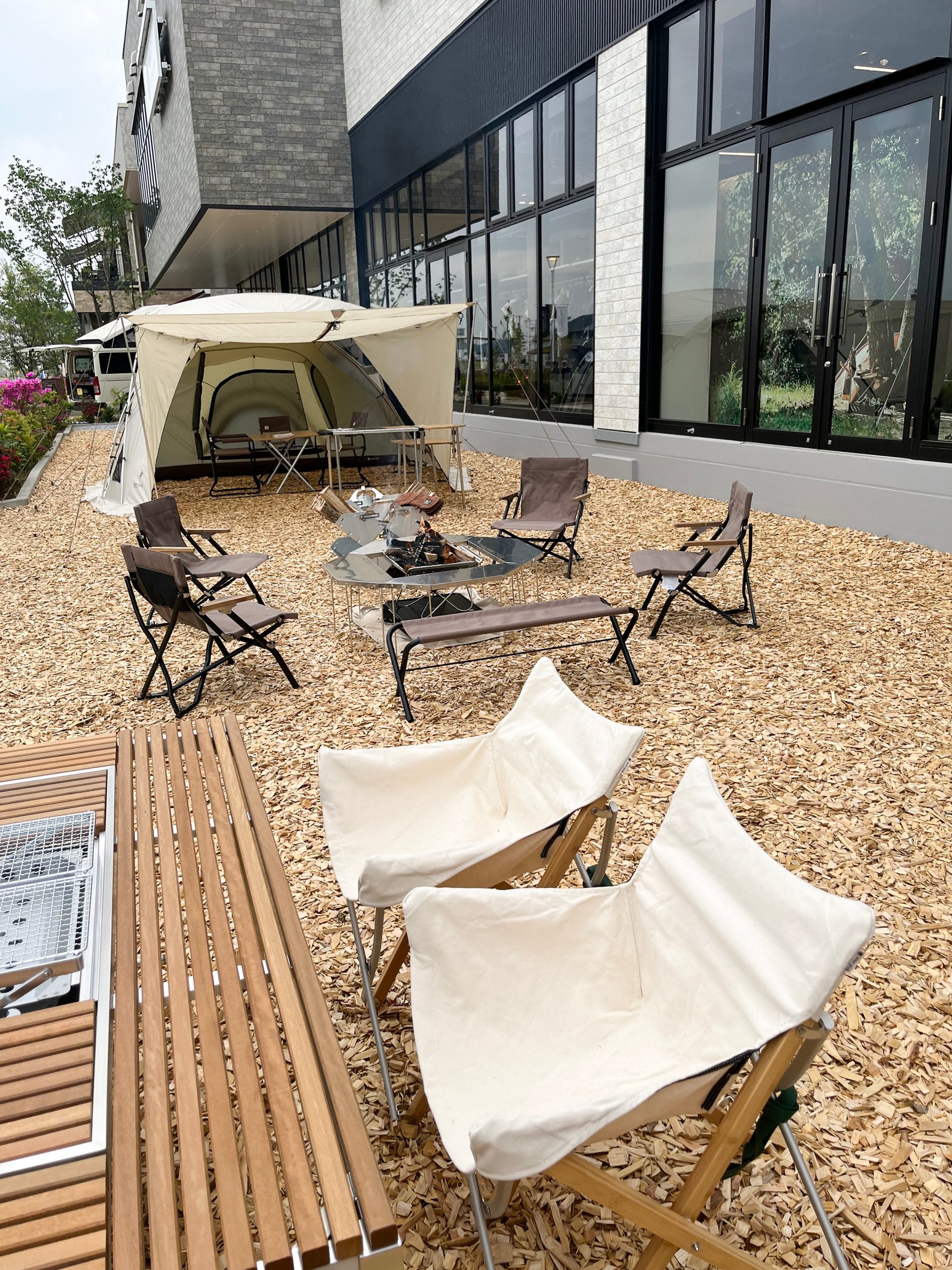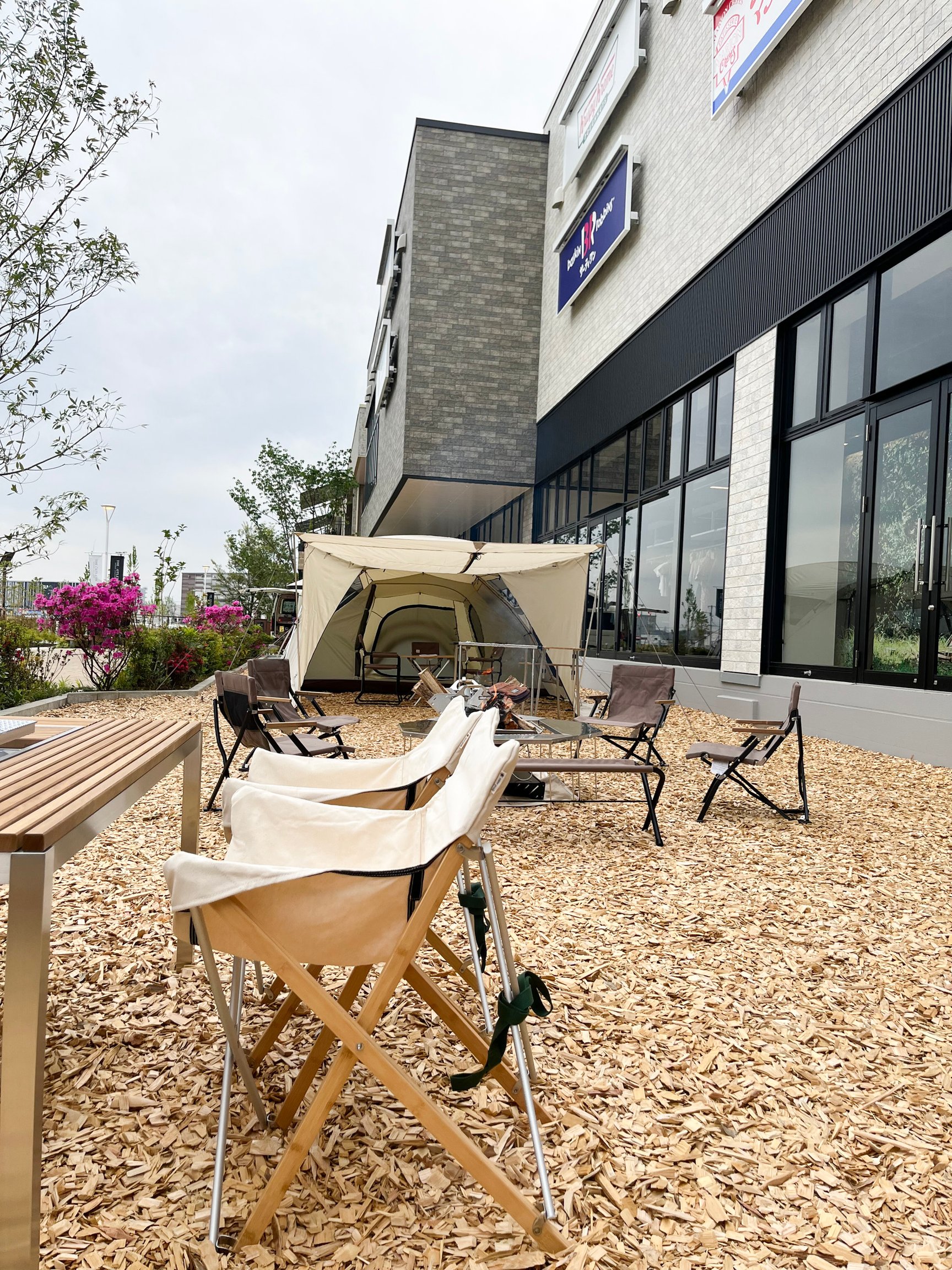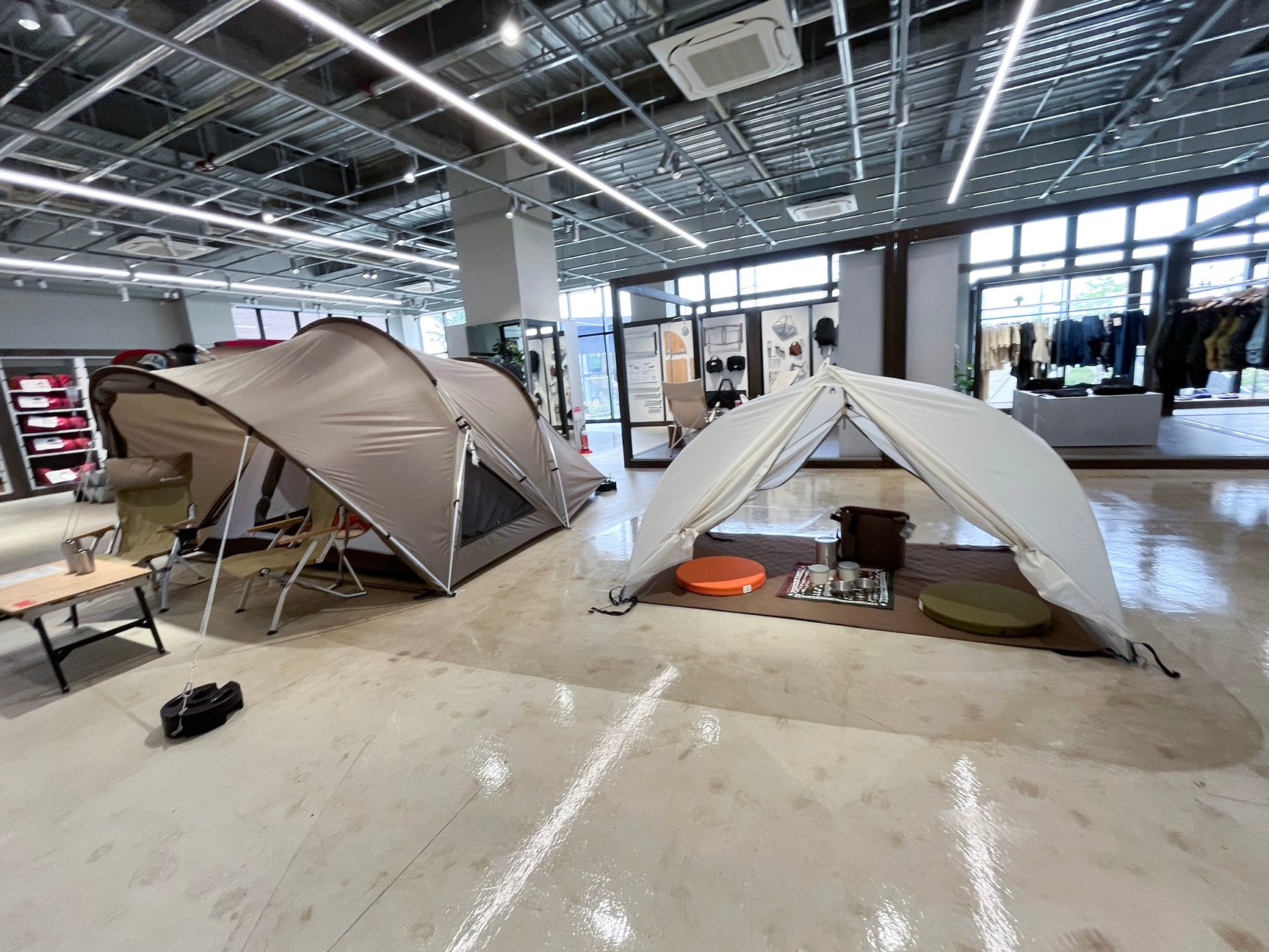 「ロゴス(LOGOS)」は新業態「ロゴス ショップ&ヒロバ(LOGOS SHOP&HIROBA)」を関東初出店。約520平方メートルの大型店に商品を幅広くラインナップし、併設する「屋外HIROBA」ではテント設営などアウトドア体験イベントを実施する。他にも、キャンピングカーを展示販売する新車ショールーム「アルトピアノラウンジ(ALTOPIANO LOUNGE)」や全国初出店の家庭用サウナ専門店「サウナハウス(SAUNA HOUSE)」など、アウトドアを意識したユニークな店舗構成になっている。