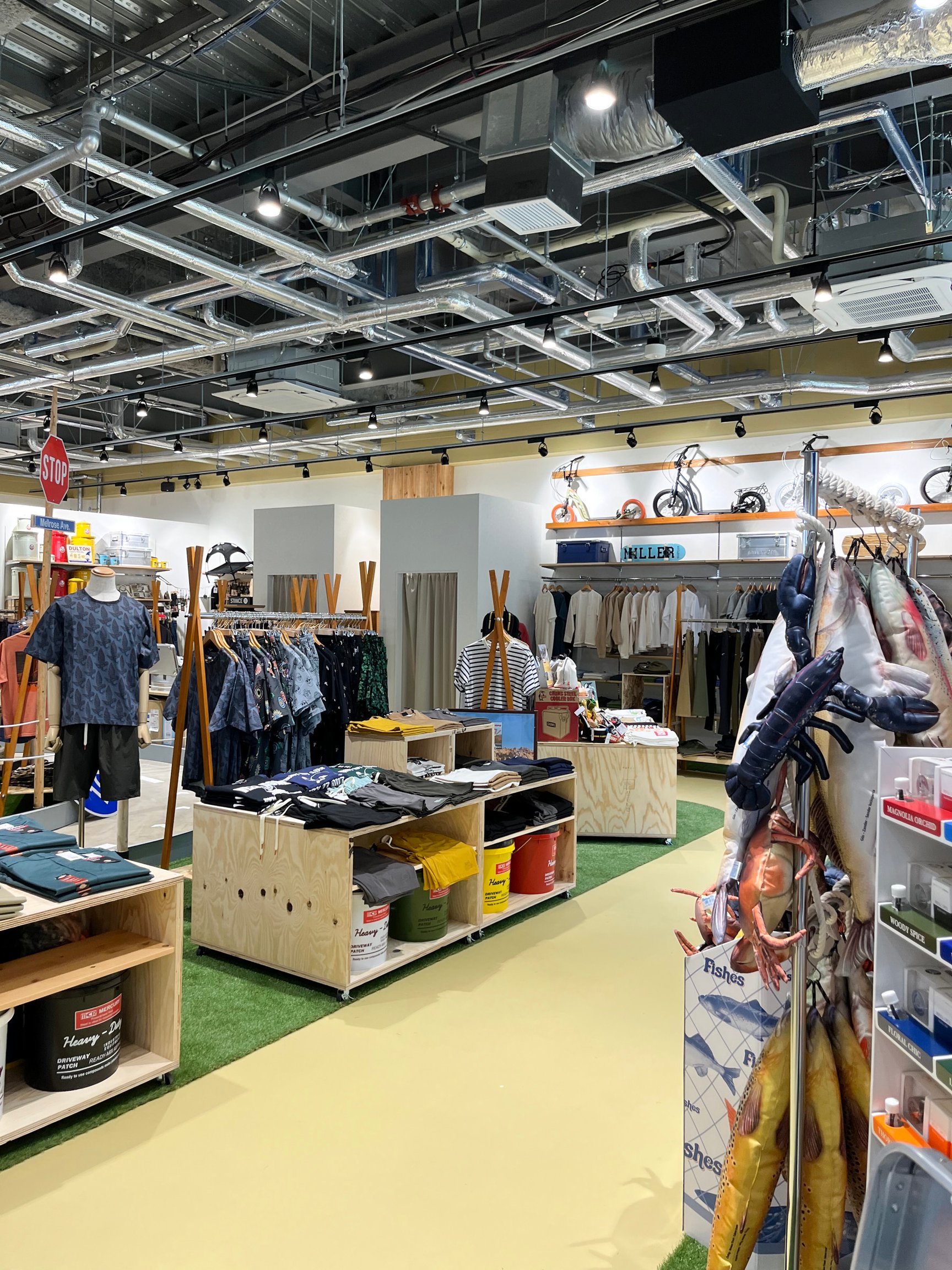 同施設の出展店舗数は150店。うち、全国初出店が11店舗、神奈川初出店が13店舗、地元企業が14店舗。全体の4割を占めるファッションでは「ビームス(BEAMS)」「アダム エ ロペ(ADAM ET ROPE)」「ベーセーストック(B.C STOCK)」といった国内の有力セレクトショップをはじめ、「ドットエスティ(.st)」「アバハウス(ABAHOUSE)」「グラニフ(graniph)」などが出店。「ディーゼル(DIESEL)」「FURLA(フルラ)」「コールハーン(COLE HAAN)」といった海外ブランドに加えて、スポーツブランドの規模を拡大。国内最大の売り場面積を構える「ニューバランス(NEW BALANCE)」を筆頭に、「ナイキ(NIKE)」「アディダス(ADIDAS)」「プーマ(PUMA)」などの大型店舗を充実させた。