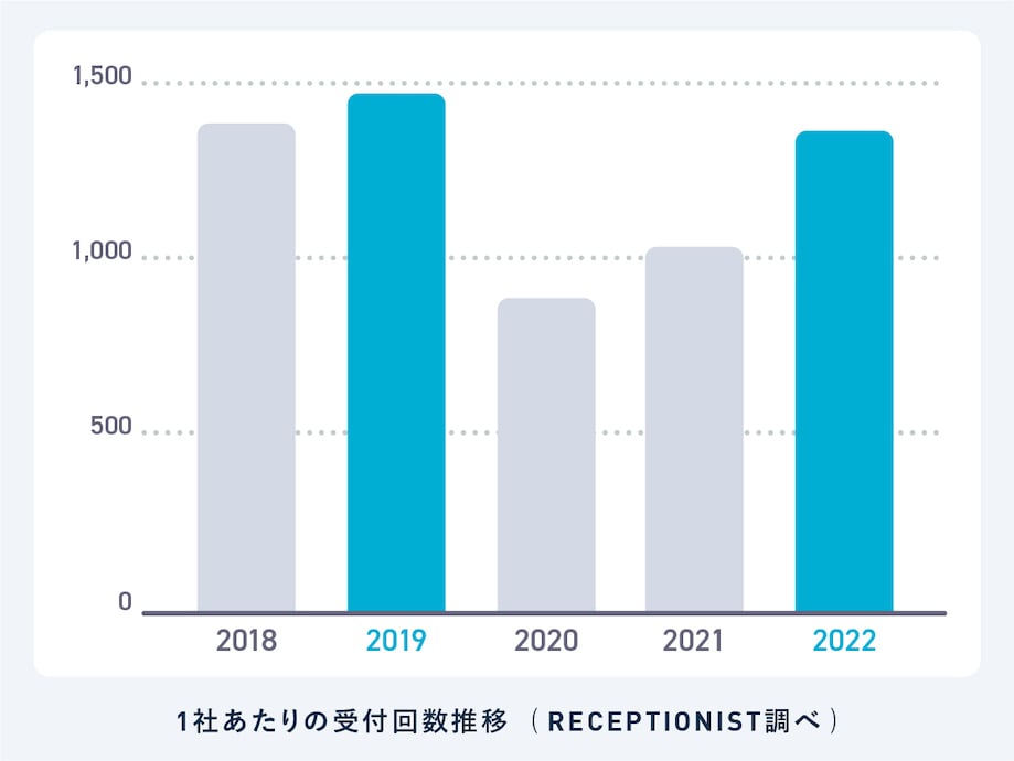 さきほど「受付の利用回数が減った」とお伝えしましたが、2021年以降は徐々に来訪が戻り、2022年の1社あたりの平均利用回数が92.7%と、コロナ以前とほぼ同水準となっています。
