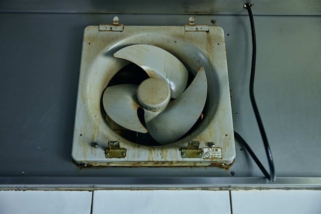 キッチンの換気扇なら、ハードクリーナーを吹きつけ、サッと軽く拭き上げるだけで本来の白い姿に。頑固な汚れの箇所には、洗剤を噴霧後、ラップやキッチンペーパー等で蓋をして5~10分程度放置し、ふき取ると、簡単に汚れを落とすことができる。
